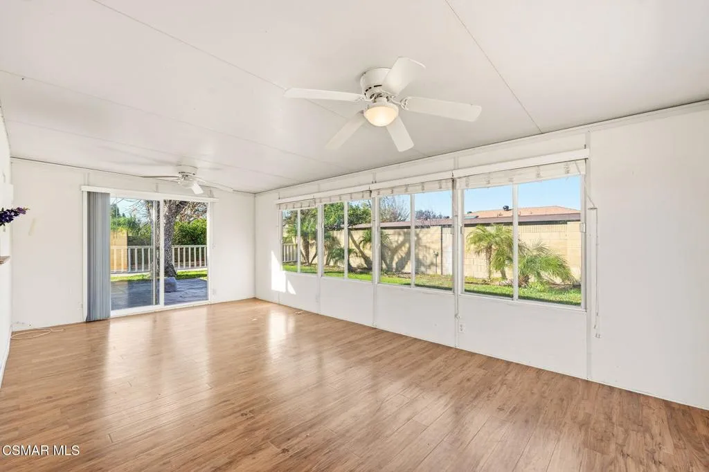 Welcome to this beautifully updated single-story home with gated RV access, ideally located on the highly desirable east end of Simi Valley and showcasing stunning Santa Susana Mountain views. Step inside to a spacious living room that flows into the gourmet kitchen, featuring granite countertops, stainless steel appliances, recessed lighting, and elegant crown molding.Just off the kitchen, enjoy a huge, bright sunroom that extends your living space effortlessly--filled with natural light and perfectly positioned to take in beautiful mountain views. Double sliding glass doors open to the backyard, creating seamless indoor-outdoor living.The home offers three comfortable bedrooms, each enhanced with crown molding, recessed lighting, and ceiling fans, plus two fully remodeled bathrooms with stylish finishes. In addition, the converted garage provides a versatile, livable bonus space ideal for a home gym, office, or playroom complete with wood-like flooring, air conditioning, and recessed lighting.Outside, you'll love the lush front landscaping, double driveway, massive gated RV area, and a separate storage shed, perfect for all your toys, tools, and extras. Welcome home!