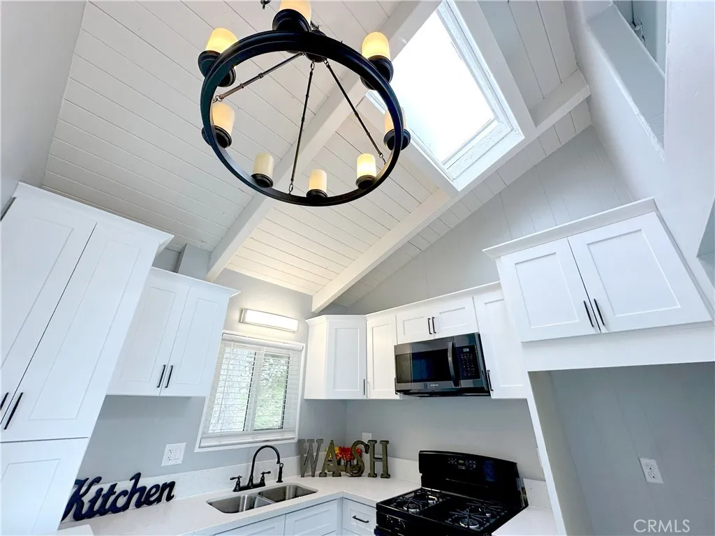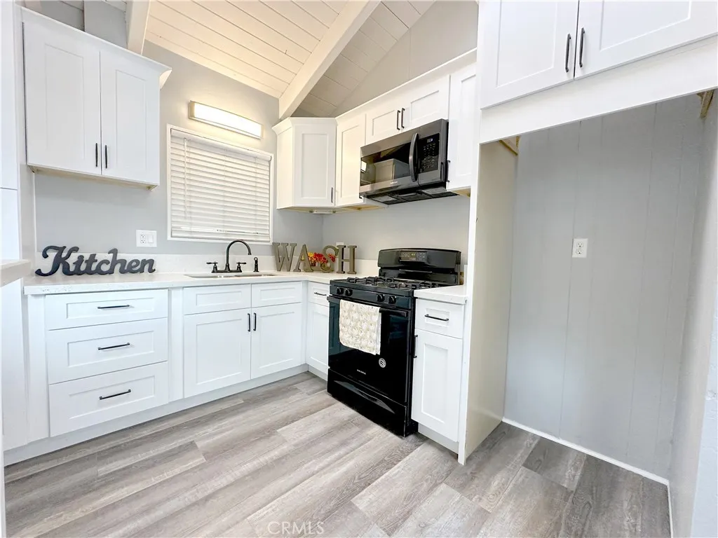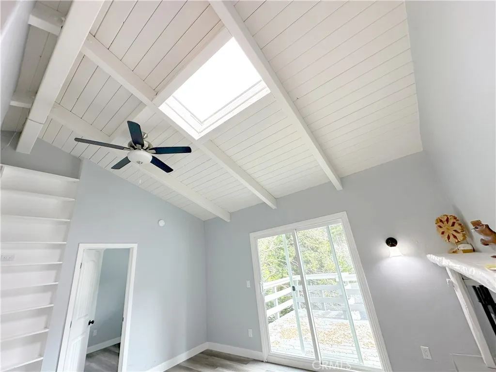 Step inside and instantly feel at home in this light-filled mountain retreat featuring an open floorplan, soaring beamed ceilings, and skylights that bathe the space in natural light. Gather around the cozy fireplace or slide open the oversized glass doors to a spacious deck where peaceful forest views set the perfect backdrop for morning coffee or evening unwinding. The fully remodeled kitchen is both stylish and functional, showcasing brand-new appliances, quartz countertops, and soft-close cabinets and drawers. New laminate flooring flows throughout the home, adding a fresh, modern feel. The main level offers two comfortable bedrooms and a beautifully renovated full bathroom. Downstairs, a completely separate apartment provides incredible flexibility and income potential. With its own private entry, this lower level features two additional bedrooms, a fully renovated bathroom, and a gorgeous kitchen with new appliances, quartz countertops, and soft-close cabinetry. A discreet hide-away stairway connects the upper and lower units when desired. Outside, enjoy a spacious, usable backyard, a fenced level front yard perfect for kids or pets, and added privacy all around. An outdoor shed includes laundry hookups, and the paved driveway offers convenient parking for two vehicles. Whether you’re looking for a full-time residence, a relaxing vacation escape, or a smart investment, this home truly does it all. Live in one unit and rent the other, or maximize rental income with two complete living spaces—this is mountain living with endless possibilities.