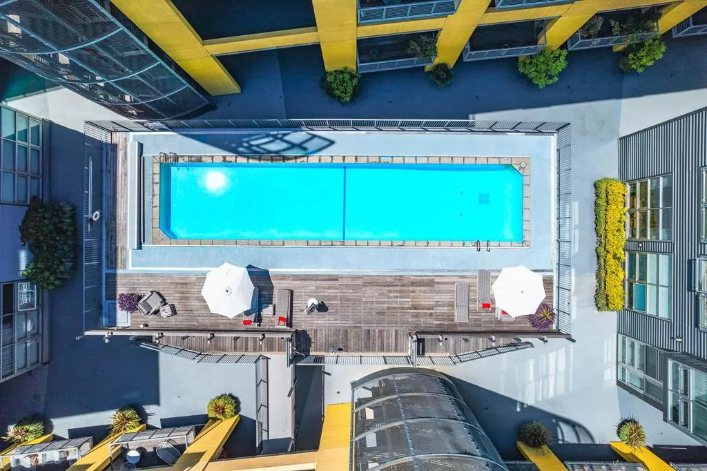 Compelling penthouse opportunity in full amenity building! Elevated living can be yours in this stunning two bedroom two bathroom penthouse at The Sierra at Jack London Square. Designed by award-winning Kava Massih Architects. This top-floor residence combines soaring 18-ft ceilings, floor-to-ceiling bay window with breathtaking city views, and refined finishes throughout. The main level boasts a dramatic limestone entry, hardwood floors, sleek kitchen with refinished cabinets, new refrigerator, sunlit bedroom, Italian porcelain bath, and in-unit laundry. Upstairs, a private loft suite includes a spacious ensuite bath and a large private terrace ideal for upscale entertaining or tranquil mornings. Thoughtful upgrades include new carpet, designer paint, Lutron dimmers, recessed LED fixtures, custom closets, and air conditioning. Includes two rare side-by-side garage spaces. Enjoy full-service luxury amenities: fob access control building, 24/7 concierge, heated lap pool, fitness center, sauna, media room, two conference rooms, bicycle storage, and WIFI in select common areas. Walk Score of 93, walk to trendy Jack London Square, waterfront dining, wineries, breweries, coffee houses, live entertainment, farmer's market, Oakland estuary, SF Ferry, BART, Amtrak, freeways and more.