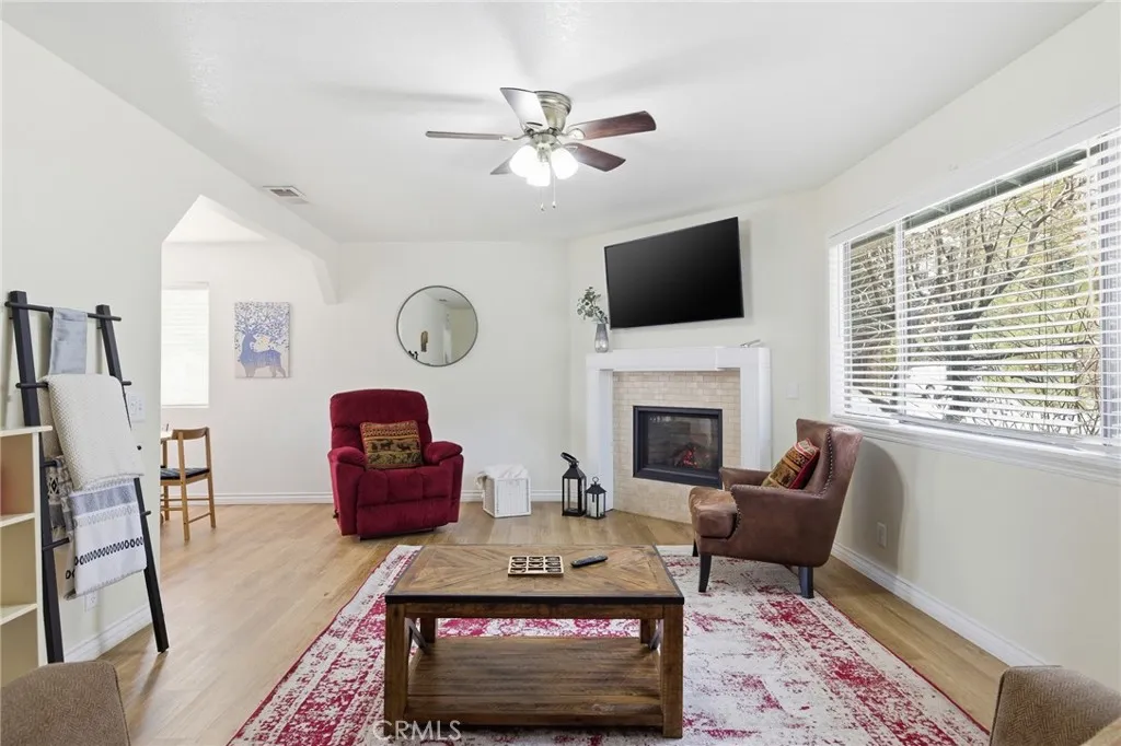 Welcome to this charming 2-bedroom, 1-bath Sierra-style mountain cabin in the heart of Big Bear City, offering approximately 1,000 sq ft of living space on a 5,250 sq ft level lot. Step inside to a home that feels light and inviting, featuring newer flooring throughout, a newer gas fireplace for cozy mountain evenings, and a newer roof. Washer and dryer hookups are conveniently located inside the home, and the two generously sized bedrooms provide comfortable accommodations for family, guests, or vacation renters.