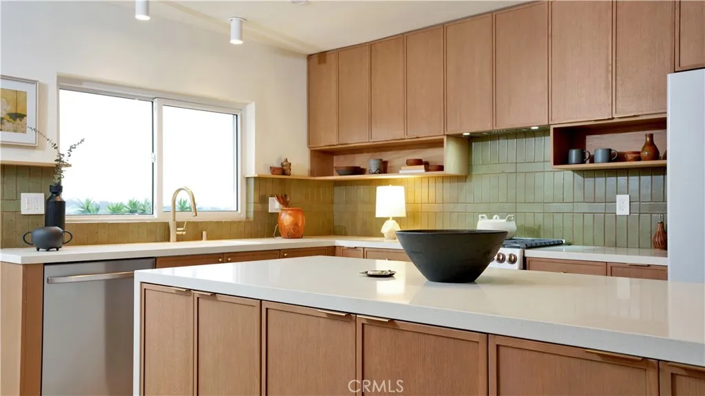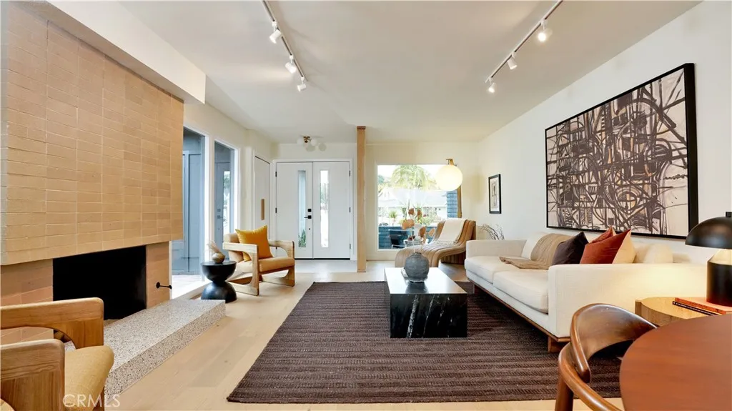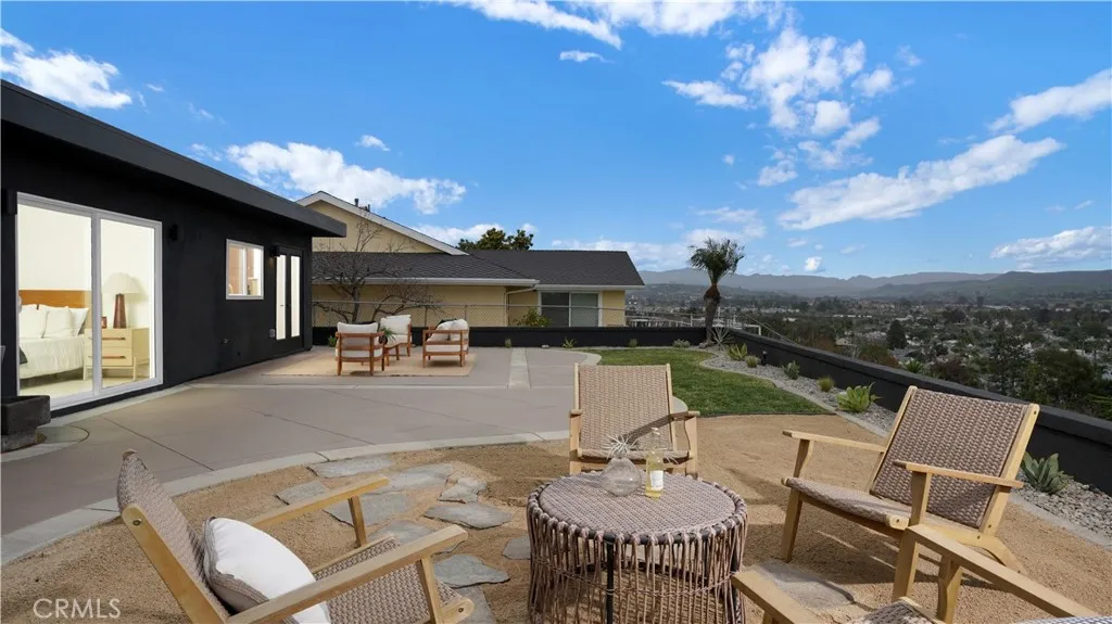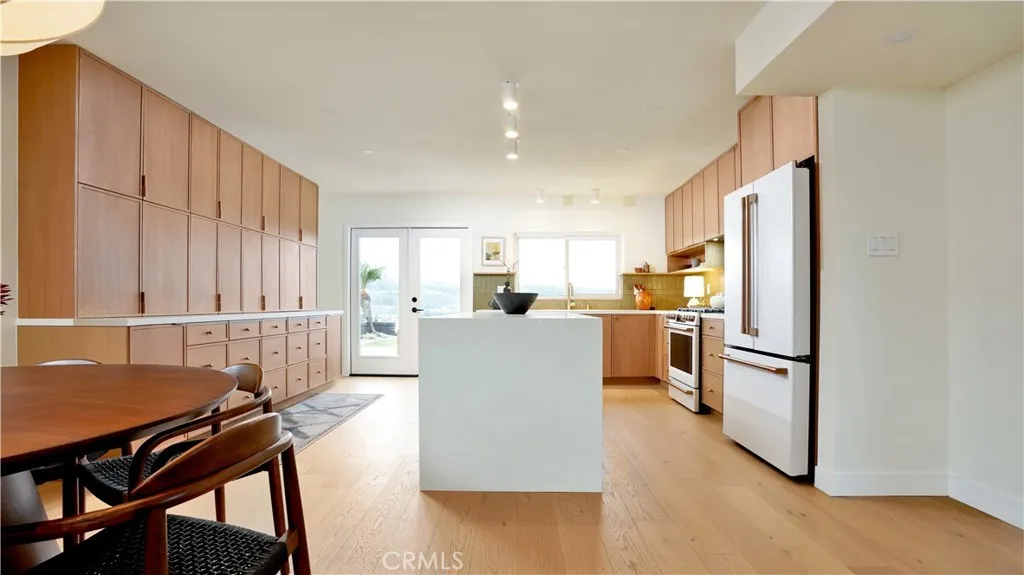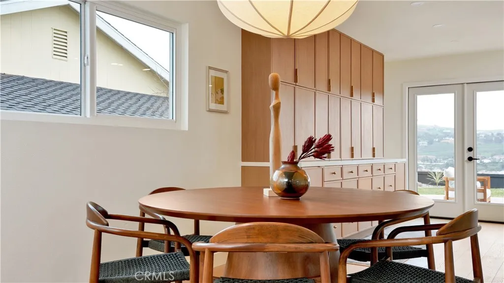 Views meet fully reimagined mid-century modern showpiece. Perched high, at the end of a quiet cul-de-sac, 33042 Palo Alto has 180° panoramic views stretch from the mountains to the Pacific Ocean. On an expansive 13,620sqft hillside, this 3-bedroom, 2-bath home offers approximately 1,939sqft of design-forward living, meticulously remodeled with designer finishes in every direction. The moment you arrive, the home’s curb appeal sets the tone: a chic, modern color palette, rich wood garage doors, and manicured landscaping create a warm, architectural welcome. Inside, the entry way is distinguished by rotating dark oak Wood Slat Room Dividers as sunlight pours through nearly floor-to-ceiling windows, framing the flat brick fireplace with terrazzo hearth and illuminating the home’s seamless flow. Recessed LED lighting showcase wide-plank white-oak engineered wood flooring that runs throughout the living spaces, delivering a cohesive aesthetic. Designed for effortless entertaining, the open-concept living area transitions beautifully into the remodeled kitchen. Featuring dark-oak inspired cabinetry, Copa high quality quartz countertops, and clé tile backsplash, a generous center island, and premium all new Café appliances. Stylishly, integrated hood wrapped modern dark oak with custom shelves keep the lines crisp and the focus where it belongs: on the architectural design. The heart of the home, a signature open-air atrium anchors the floorplan, bringing sky, light, and calm into the everyday. Down the hall, two bedrooms enjoy backyard exposure and views that reach for miles, conveniently located near a renovated hall bath with a dual-sink vanity, elegant lighting, and a tiled tub/shower surround. The primary suite is a retreat, offering a custom oversized walk-in closet and an editorial ensuite dressed in pebble-inspired, large-format tile, curb-less walk-in shower with rainfall shower head, dual sinks, and bespoke pendant lighting. A slider welcomes in natural light and connects the suite to the atrium’s serene ambiance. And then, la crème de la crème, the backyard, embrace the unobstructed, endless horizons: sweeping mountain-to-ocean backdrop that transforms morning coffee, golden hour, and evenings under the stars into a daily ritual. Completing the package the home has, all double pane windows & sliders, solar panels, new AC & smart thermostat, ring doorbell and a tankless water heater. This is Dana Point hillside living at its most unforgettable.
