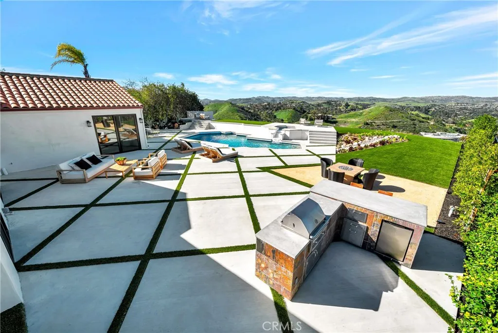 Views! Views! Panoramic Views! Welcome To The Prestigious Guard Gated Community of Westridge In Gorgeous Calabasas! This Rare, ONE STORY Beauty Shows Like A True Model!!! This Renovated Dream Exemplifies Luxury At Its Finest! This Home Features An Expansive Open Layout, Jaw Dropping Panoramic Views Of Calabasas and Beyond, Fine Finishes Including A Brand New Chef's Kitchen Equipped With State of Art Viking Appliances, White Quartz Counter Tops, Large Center Island, Sleek Cabinetry & A Breakfast Nook Overlooking The Entertainer's Yard. This Home Has An Unforgettable Warm, Modern Vibe. Complete with Wood Floors, LED Lighting, A Fantastic Indoor/Outdoor Living Space, Multiple Fireplaces, New Windows & Doors, Oversized Living Room-Perfect For Entertaining, A Primary Suite Fit For A King, Spa Style En-Suite, Custom Walk-In Closet+++ There Is A Junior Master Suite Easily Used As A Theater Room, Poker Room & More With Fantastic Double Doors Opening To The Loggia! Find A Designated Office, And Additional Spacious Bedrooms, A Separate Laundry Room, 3 Car Garage & More. Step Outside & Enjoy The Feeling Of 5 Star Serenity! This Massive Flat Lot Features A Pool, Spa, Built-In BBQ, Fire Pit, Multiple Lounge Areas & Exudes Resort Vibes. Enjoy The Spectacular Views From Dusk Till Dawn! Walking Distance To The Calabasas Lake, Commons, Cafe's & Boutiques.