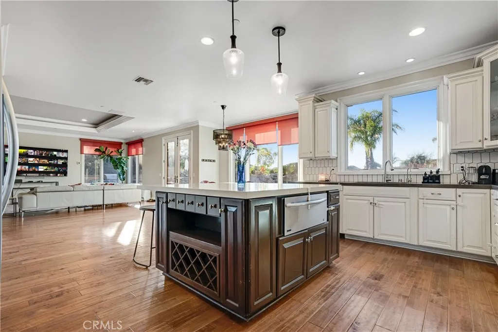 Inside, soaring ceilings, refined architectural details, and expansive windows fill the home with natural light and frame stunning views. The chef’s kitchen showcases a large center island, quartz countertops, custom cabinetry, walk-in pantry, and premium appliances, flowing seamlessly into a spacious family room ideal for both intimate gatherings and large-scale entertaining. The primary suite is a private retreat with a fireplace, custom walk-in closet, and spa-inspired bath.