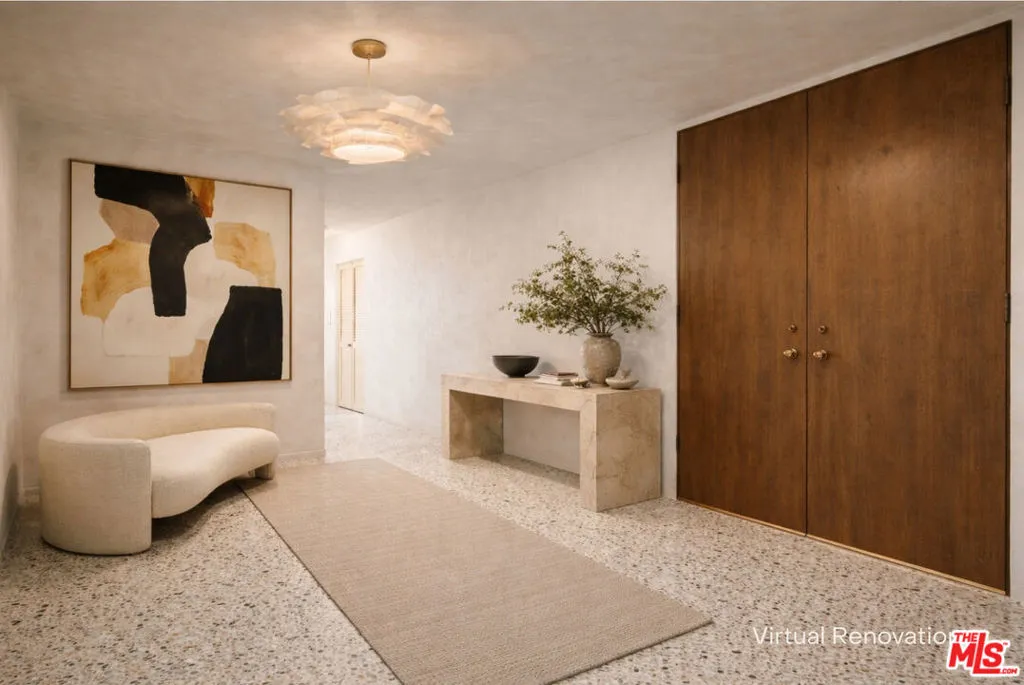 Opportunity in Beverly Hills! Spanning the full depth of the building from east to west, this nearly 1,800-square-foot residence delivers breathtaking panoramic views. From sunsets over Century City to sweeping eastern vistas of Downtown Los Angeles, the Hollywood Hills, and even snow-capped mountains, the outlook is extraordinary from the living room and both bedrooms. The views are real and the potential is enormous. Enhance or redo with confidence the value is there! With two spacious bedrooms, 2.5 baths, and a large double-door entry foyer that could easily accommodate a sitting area or office, the layout offers incredible bones. The kitchen is generously sized and opens to the living areas and views. The primary suite is expansive, with a substantial bath featuring dual vanities, separate tub and shower and dressing area. Storage is abundant throughout, including multiple hall closets. Hardwood floors run throughout the home, and a washer and dryer are conveniently located inside the unit. Set within a well-maintained, controlled-access building with side-by-side gated parking, storage, heated pool, sauna, and roof deck with views. This residence combines location, scale, and transformative potential all on iconic and quiet Maple Drive. Priced for immediate sale.