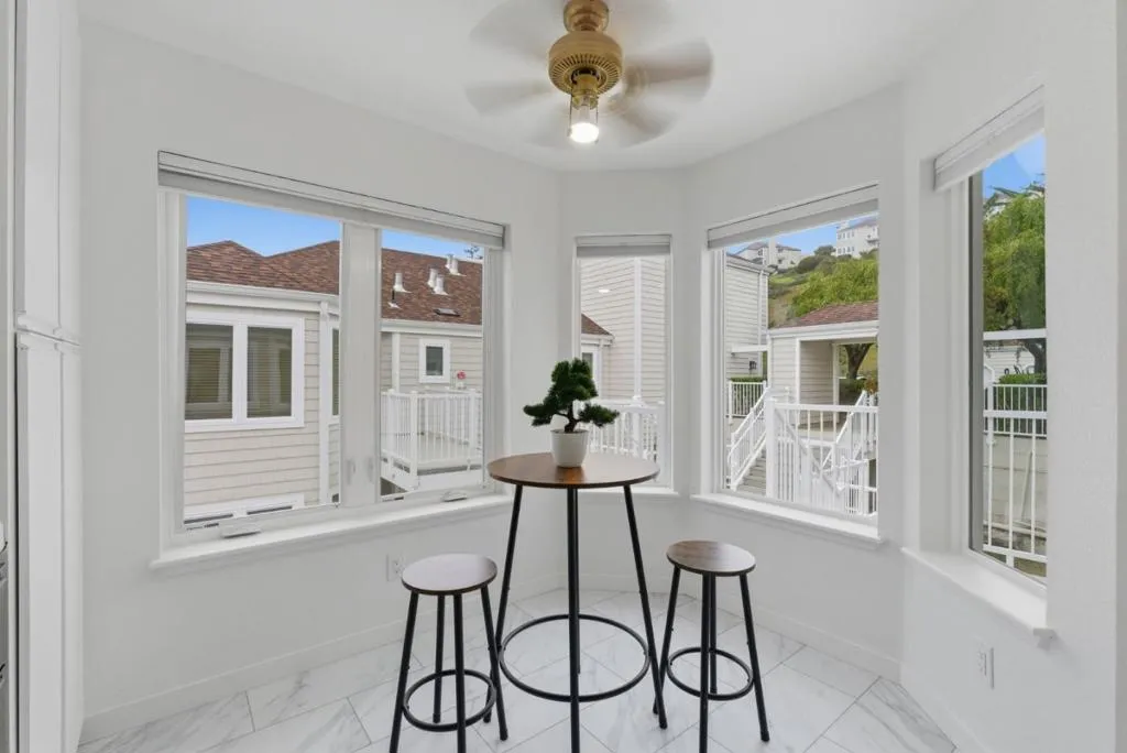 Welcome to this beautifully updated, 2-bedroom, 2-bath condo nestled in a gated, peaceful hilltop community in Daly City. This home offers 1,158 sq ft of living space with high ceilings, a bright living room, and abundant natural light throughout. The kitchen features two-toned cabinets with ample storage and a cozy breakfast nook. The kitchen flooring has been redone, and all major appliances are brand new, including the range, dishwasher, washer, and dryer, offering true move-in-ready convenience. The primary suite is a private retreat, complete with an ensuite bathroom featuring dual sinks. In-unit laundry adds everyday ease. Step out onto your private balcony and take in peaceful mountain views. The neighborhood is quiet and serene with scenic views. Recent exterior improvements include new doors, windows, roof, and vents. The property includes three parking spaces: one garage space, one driveway space, and one assigned parking space offering peace of mind and long-term value. Residents also enjoy access to a community clubhouse with a gym. With its modern updates, abundant light, and serene views, this condo offers the ideal blend of comfort, privacy, and location just minutes from shopping, transit, and easy access to San Francisco.