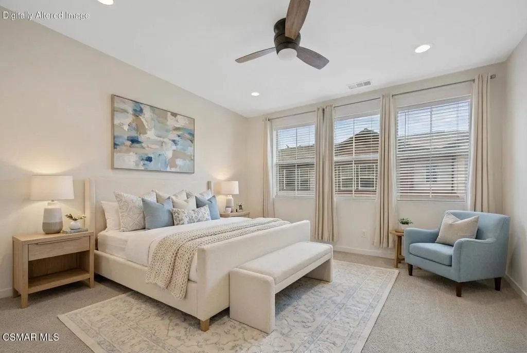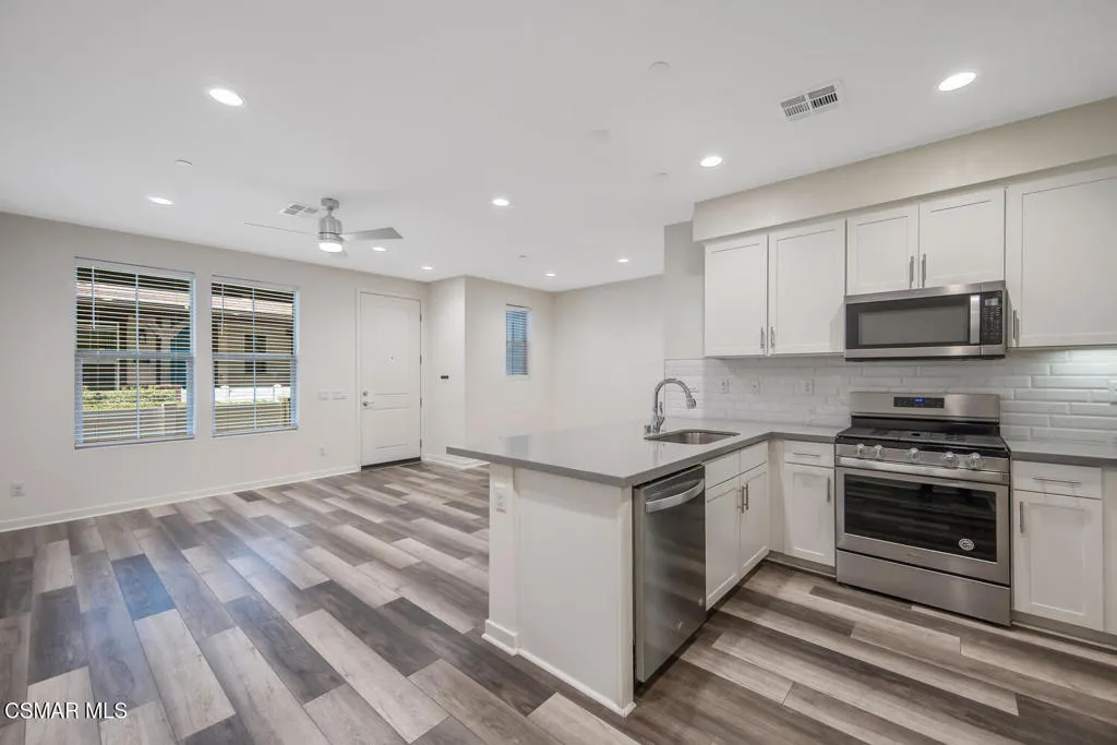 Welcome to Simi Valley's best kept secret- The Westerly. When you purchase here, your becoming part of a community! This 3 bedroom, 2.5 bath condo has nearly 1,400 sqft. of living space. You enter into the open great room with high ceilings and laminated flooring. The kitchen offers plenty of cabinetry, quartz counters, stainless steel appliances and a large reach-in pantry. There is also a 2-car, direct access garage. Upstairs, you'll find all 3 bedrooms, a guest bath and the laundry room (for easy convenience). The primary bedroom boast a good size to fit your entire bedroom set and room to spare. The en-suite primary bath has a separate tub & shower and dual sink quartz vanity. The joy here is the abundance of amenities and outdoor activities, which includes: a community pool & BBQ area, separate children & pet parks, even a bocce ball court, and so much more! Living at the Westerly, you're just a blocks to everything one could need- shopping, fine restaurants, parks, award winning schools and the Simi Regional Mall. Just a couple of blocks to the 23 & 118 freeways to get you anywhere in SoCal. Come find out why the Westerly is one of Simi Valley's premier communities!