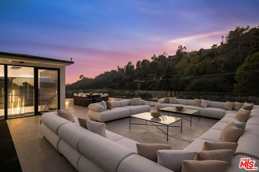 Nestled in the Bel Air hills, this newly constructed modern home combines elevated luxury living with timeless sophisticated elements and contemporary designs to meet every discerning homebuyers desires. The 10 ft. pivot entry door exposes an open and airy floor plan with soaring ceilings and natural light from every angle. The home spans nearly 5,000 SQFT and seamlessly merges indoor-outdoor living while simultaneously showcasing the natural setting, creating a warm and inviting atmosphere designed for grand scale entertaining. Premium polished porcelain tile flooring throughout leads the way to the state of the art custom kitchen that includes a custom handcrafted luxury cooking range and hood, and tailor made stainless steel cabinetry by L'Atelier Paris Haute Design. All surrounded by Porcelain countertops, oversized island, and Gaggenau luxury home appliances to create the ultimate gourmet chef's kitchen. Floor to ceiling disappearing Fleetwood sliding doors from both kitchen and living room open to a stunning custom zero edge infinity pool and jacuzzi, along with a Hestan 36" built-in natural gas grill with built-in natural gas doubleside burners, and Gozney Hybrid Pizza oven. Rounding out the main level is a formal dining room, living room, home theater with 4K HDR LED smart home projector and Italian leather seating, ensuite bedroom for family and guests, and home office which can double as maids quarters for privacy and convenience. Featuring 4 large bedrooms and 4 bathrooms, the second floor offers a sanctuary like experience that emphasizes serenity without losing the integrity of our connection to nature. Views of the rolling hills all around the private balconies and Catalina sunset glimpses from the private side den off the primary offer up an unmatched living experience. The primary retreat entails 2 private balconies with separate facing views, walk-in closet and lavish bath that consists of a soaker tub, large glass enclosed shower comprised of Bookmatched Onyx green polished porcelain, and double sinks with a vanity area. Additionally, you will find three ensuite bedrooms, a laundry room, and side den with views to the ocean. Bonus stairs lead to a 1500 sq. ft. of rooftop deck that includes lounge area with non slip tiles and home gym with black rubber flooring. Top-tier amenities include custom-built wildfire defense sprinkler system, UniFi Home Security Camera System, home audio distribution system using UniFi Amps with in-ceiling speakers throughout, two car finished garage, smart home features, and Starlink satellite with added access points. Conveniently located near the highly acclaimed Roscomare Elementary School, and within close proximity to the valley and Westside.