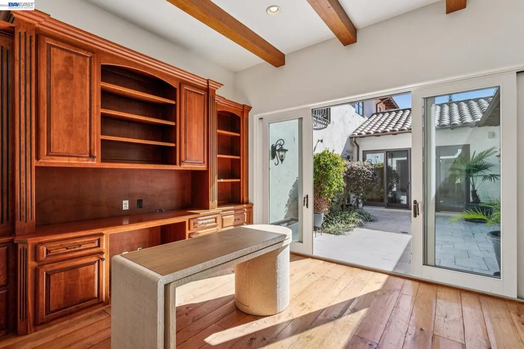 Welcome to 1439 Vine Ln, a gated estate at the end of a private cul-de-sac in coveted Westside Alamo. Offering exceptional privacy minutes from downtown, top-rated schools, and commute routes, this custom Santa Barbara–inspired residence blends tranquility, convenience, and an elevated California lifestyle. Spanning 5,289 sq ft, the home features 5 bedrooms, a dedicated office, and 6 bathrooms with a layout designed for effortless living and entertaining. Distressed walnut hardwood floors and curated finishes add warmth and sophistication, while the seamless connection between the chef’s kitchen and family room creates an inviting gathering space. Premium appliances and a custom wine cellar enhance its entertaining appeal. The main-level primary suite offers a peaceful retreat with a spacious walk-in closet and a luxurious ensuite finished in elegant marble tile. Resort-inspired grounds provide year-round enjoyment with three tranquil courtyards, including a central open-air loggia gallery, an outdoor kitchen for al fresco dining, a lighted sport court, and a picturesque pond with a water feature and charming stone bridge. Rarely does a property combine this level of privacy, resort-style outdoor living, and turnkey comfort in such a premier Westside location.