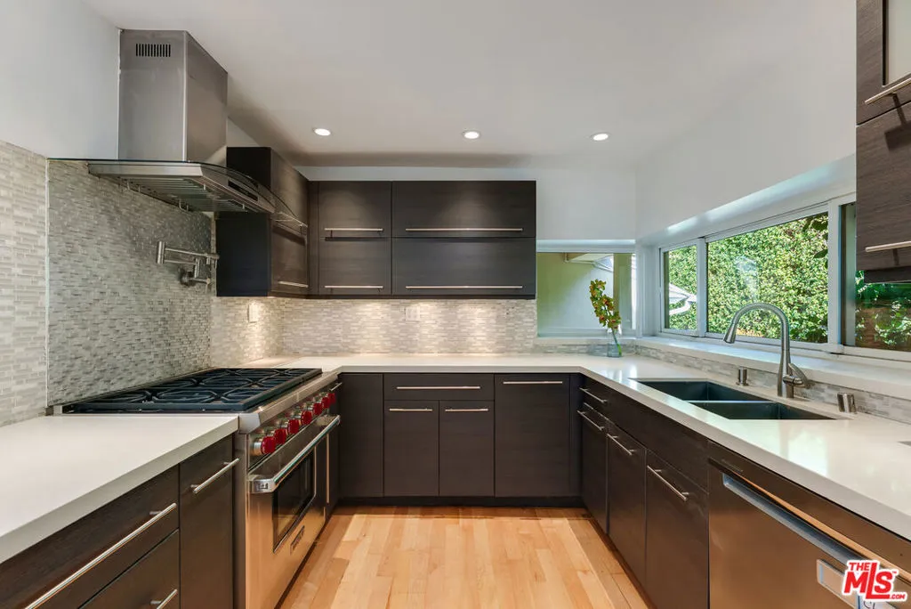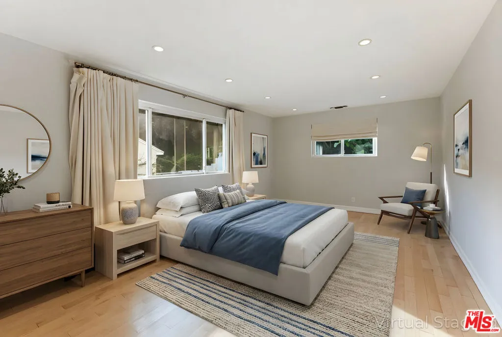 Beautiful family home located in the highly coveted Roscomare School District, available now with a minimum one-year lease. This exceptional residence offers four spacious bedrooms and a thoughtfully designed floor plan ideal for both everyday living and entertaining. The home has been extensively updated, featuring all-new exterior and interior paint, polished hardwood floors, and a brand-new AC system (owner invested $22,000). All major appliances are less than three years old, including the dishwasher, refrigerator, washer, and dryer, with a Wolf range anchoring the gourmet kitchen. Marble countertops and stainless steel appliances open seamlessly to inviting living and dining spaces. The beautifully landscaped backyard is a private, resort-style oasis complete with a heated pool and spa, brand-new pool water heater, multiple seating areas, built-in grills, a fire pit, and tranquil treetop views. The property also includes a security system with cameras and alarm for added peace of mind. A rare opportunity to lease a serene, move-in-ready home in one of the most sought-after school districts.