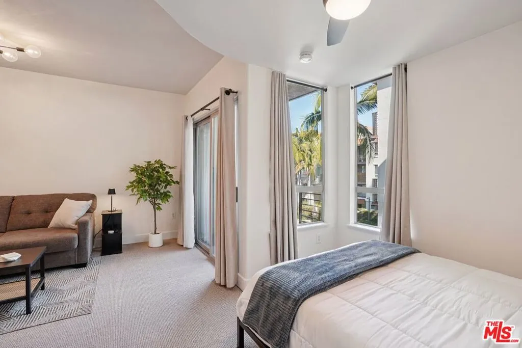 Residence #371 proves that a studio can live large. As an end unit, it enjoys added privacy and beautiful natural light, with sliding glass doors opening to a private balcony overlooking the serene pool courtyard and swaying palms: a peaceful, resort-style backdrop in the middle of the city. Exceptionally clean and move-in ready, this home features a full size kitchen with white cabinetry, granite countertops and stainless steel newer appliances. Upgraded with sleek charcoal porcelain tile flooring, cool lighting fixtures, and bold black door and hardware details add a crisp, modern edge throughout. The defined sleeping alcove connects to a fully built-out walk-in closet with custom organization, while the updated bathroom showcases a sleek vanity, black fixtures, and a modern glass-enclosed shower/tub. One assigned parking space is included. Savoy is one of Downtown LA's most established and sought-after communities, known for its lush landscaped courtyards, resort-style pool and spa, fitness center, screening room, business center, library, rooftop deck, and 24-hour attended lobby with guest parking. It also boasts some of the lower HOA dues in Downtown a significant advantage for both owner-occupants and investors. Located at the crossroads of Little Tokyo and the Arts District, residents enjoy a true neighborhood feel with walkable access to independent cafes, acclaimed restaurants, galleries, specialty markets, and Metro connections, plus quick access to the 101, 110, 5, and 10 freeways. It's a vibrant yet village-like pocket of DTLA that continues to attract creatives, professionals, and long-term homeowners alike.