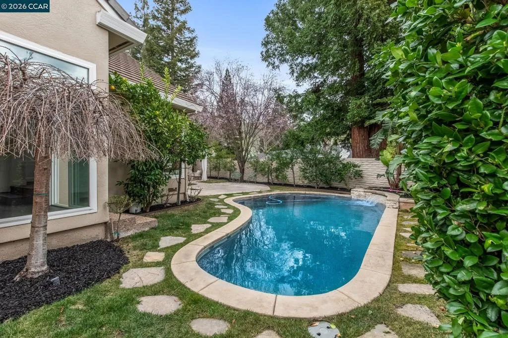 Nestled behind the gates of the prestigious Blackhawk community, sits 30 Sugar Pine Lane offering the perfect blend of privacy, comfort, & resort-style living. This beautifully refreshed 3 bedroom, 2.5 bath home features new interior paint, new carpeting & lighting throughout the home, creating a bright and inviting atmosphere for a cozy day at home or entertaining family & friends. The thoughtfully designed floor plan includes a versatile bonus loft & an office—ideal for remote work, study, or additional living space. The spacious primary suite is highlighted by vaulted ceilings & gushing natural light. Two additional bedrooms offer comfort & flexibility for family or guests. Step outside to your private backyard oasis, complete with a sparkling pool & charming pergola—perfect for relaxing afternoons or enjoying warm California evenings. A blooming pink magnolia tree adds a touch of elegance & seasonal beauty to the serene setting. Located near Danville’s award-winning schools & just moments from Blackhawk’s renowned golf & tennis amenities, this home presents an exceptional opportunity to enjoy comfort, convenience, & community in a premier gated setting.