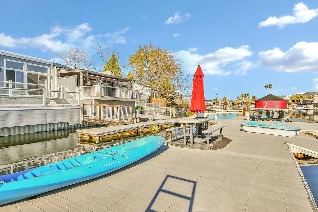Fast-water access, dock, and elevated Delta living on Marina Circle. Perfectly positioned along a quiet waterfront stretch, this beautifully designed residence offers privacy, serenity, and effortless indoor-outdoor living. A stunning Delta backdrop sets a peaceful tone throughout the home, enhancing its light, open feel. The oversized waterfront deck invites sunset dinners, relaxed gatherings, and year-round outdoor living, while the private dock provides immediate access for boating and cruising the Delta’s scenic waterways. With neighbors on only one side and open water beyond, the setting feels secluded and tranquil, framed by mature palms and lush greenery. The versatile floor plan includes 3 bedrooms, 3 baths, and a dedicated office, offering flexibility for guests, remote work, or everyday comfort. Beautifully refreshed and truly turnkey, the home reflects pride of ownership and effortless livability. Recent enhancements include fresh interior and exterior paint, updated exterior lighting, and thoughtful finish updates that elevate the home’s cohesive, move-in-ready appeal. Set within a charming waterfront community about an hour from the greater Bay Area, with convenient access to Vasco Road and Highway 4 — so you can love where you live.