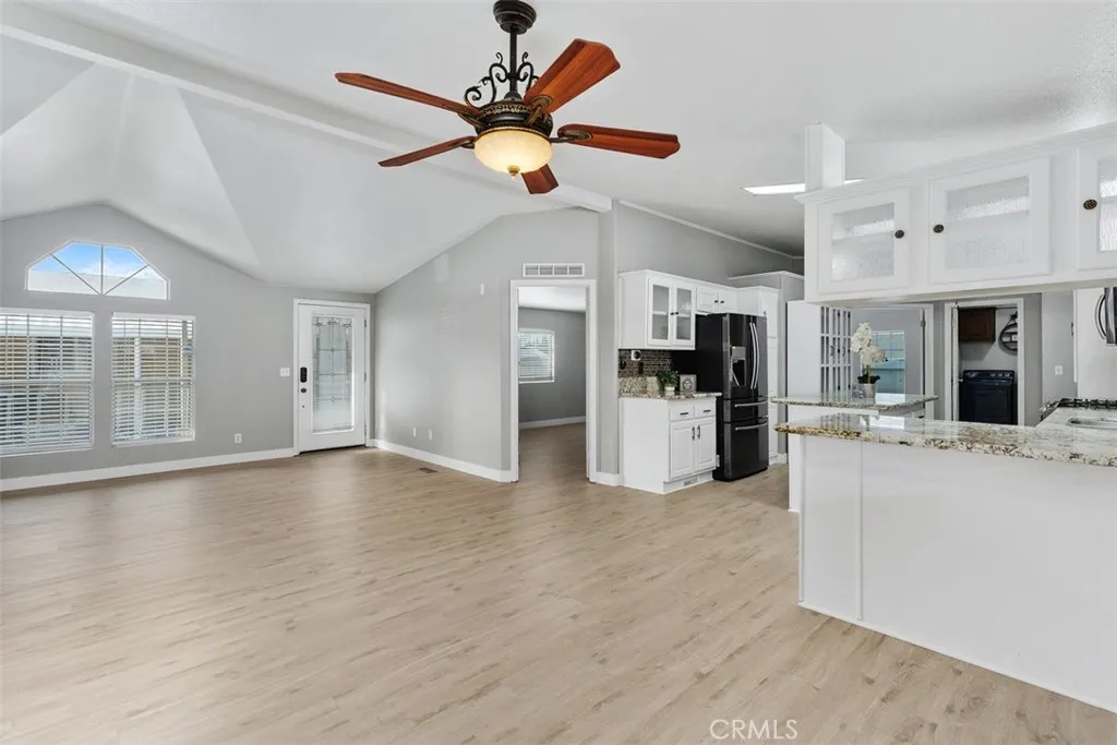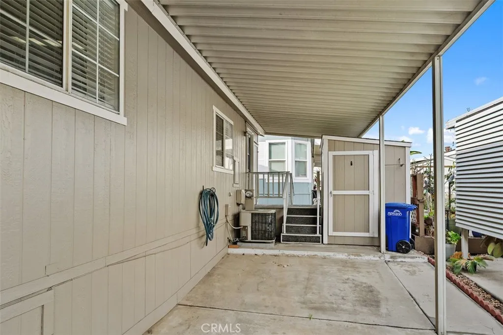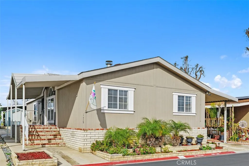 Beautiful 3-bedroom 2 bath mobile home located in the exclusive Rancho Ontario. This home's floorplan boasts the main suite in the back of the home along with the guest bedrooms on the opposite side of the home great for privacy when hosting. The main suite offers a tub, stand-up shower. The home offers an open concept from the dining room to the living room. The driveway can fit up to 3 small vehicles and also offers a big shed. The home offers a nice big open porch. Newly renovated amenities await you offering a heated pool and spa opened year-round, a hall to host any event, our clubhouse offers a billiards room, card table room, a fitness room as well as a gym and a lounge area to just sit and relax. The Park also offers an active area with two pickleball courts, bocce ball and we didn't forget about your fur babies, two dog parks. Don't miss out on the opportunity to call this beauty your home.