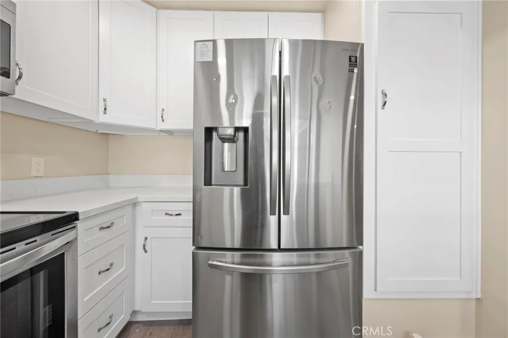 Prized end-unit in Northridge with only one shared wall and the largest patio in the complex, this beautifully updated home offers privacy, space, and style. The interior features luxury vinyl flooring, fresh paint, new base molding, and recessed lighting in the living room and kitchen. The remodeled kitchen showcases new soft-close cabinetry and white quartz countertops, and all three bathrooms have been tastefully renovated with cohesive finishes. Bedrooms include new carpet, a newer A/C unit provides year-round comfort, and convenient in-unit laundry adds everyday ease. All appliances are included — refrigerator, stove, microwave, dishwasher, washer, and dryer — making this home truly move-in ready. With two parking spaces and close proximity to excellent schools, dining, and amenities, this is a standout opportunity in Northridge.
