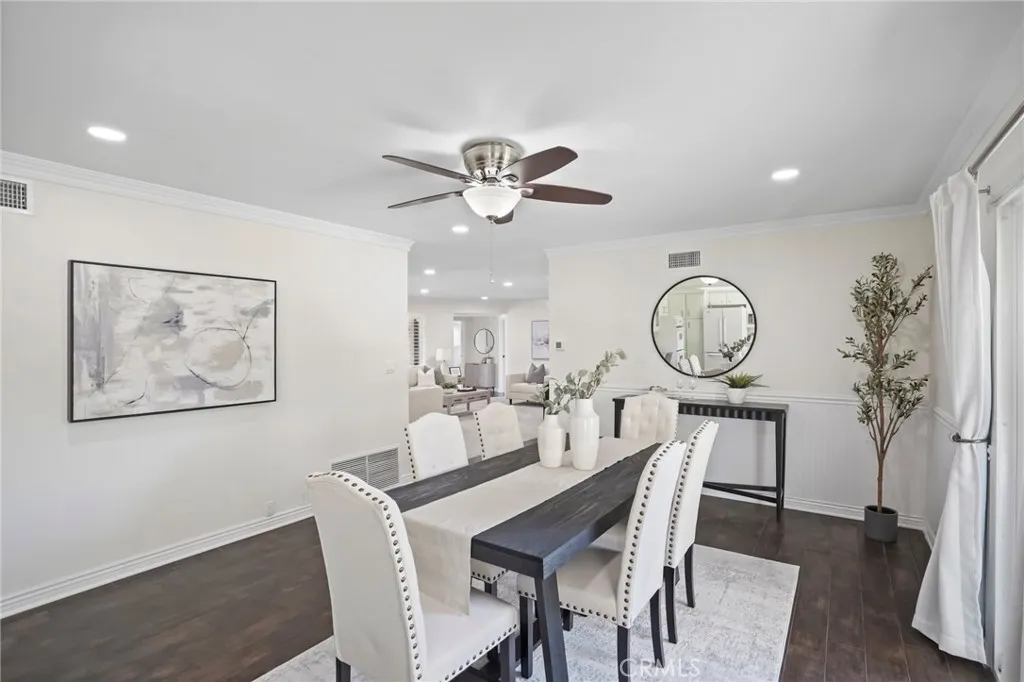 Welcome to this beautifully updated single story home nestled in a quiet, family friendly neighborhood in Placentia. This thoughtfully remodeled residence offers 4 bedrooms and 2 bathrooms on a generous lot, blending classic character with modern comfort. Step inside to a bright and inviting floor plan featuring recessed lighting, wood tile flooring, crown molding, and a cozy living room with a fireplace that flows seamlessly into dining and kitchen areas, creating an ideal space for everyday living and entertaining. An updated kitchen features quartz countertops, farmhouse sink, breakfast bar seating, abundant cabinetry, and quality appliances, making it perfect for casual meals or hosting guests. Each bedroom offers comfortable space and flexibility for family, guests, or home office use, while primary suite includes a private bath with tasteful finishes. A private backyard provides a peaceful retreat with covered patio, lush landscaping, and plenty of room to relax or entertain. Additional highlights include two car garage with epoxy flooring and ample driveway parking, along with major upgrades such as new HVAC, updated plumbing, sewer line, electrical panel, and security system, making this home truly move in ready. Convenient location near shopping, dining, parks, and easy freeway access, within award winning Placentia Yorba Linda Unified School District, creates a rare opportunity to own a turnkey home in one of North Orange County’s most sought after communities.