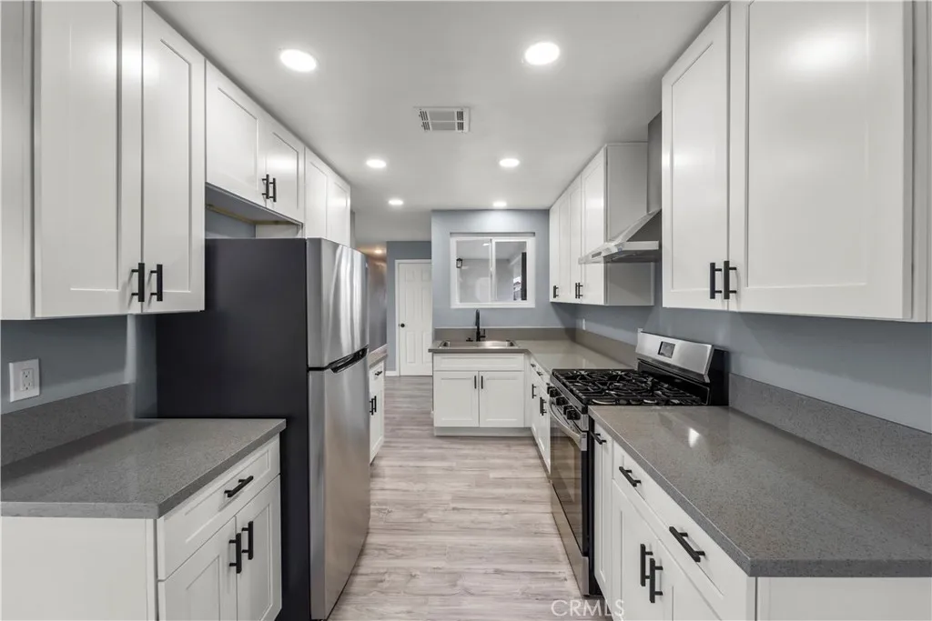 GREAT OPPORTUNITY FOR FIRST TIME BUYERS. NEWLY RENOVATED 4 BEDROOM 1 BATHROOM HOME. THE INTERIOR HAS BEEN RECENTLY FRESHLY PAINTED, PROVIDING A CLEAN, BRIGHT, AND MOVE-IN READY FEEL THROUGHOUT. NEW SOFT CLOSING KITCHEN CABINETS WITH QUARTZ COUNTERTOP. NEW GAS RANGE AND REFRIGERATOR HAS BEEN INSTALLED. BEAUTIFULLY REMODELED BATHROOM FEATURING A SLEEK GLASS SHOWER ENCLOSURE, STILISHED TILE WALLS, AND COORDINATING TILE FLOORING FOR A MODERN SPA LIKE FEEL. NEW VINYL WATERPROOF FLOORING AND DOUBLE PANE WINDOWS THROUGHOUT. NEW AIR CONDITIONING UNIT HAS BEEN INSTALLED. GOOD SIZE REAR COVERED PATIO FOR FAMILY GATHERINGS. THE EXTERIOR STUCCO HAS BEEN FRESHLY PAINTED. CLOSE TO SCHOOLS, PARKS, SHOPPING CENTERS, AND 15 FWY.