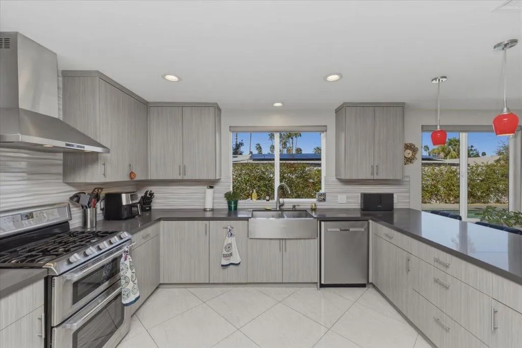 Mid-Century pool home in South Palm Desert! Completely remodeled with Open floor plan, boasting 3 bedrooms, Tile flooring in main living areas, newer kitchen with exquisite quartz counter tops along with 2 remodeled bathrooms! Backyard has hushed privacy with a recently added Pebble Tec Salt Water Pool and Spa! Custom window coverings, huge walk-in closet in primary bath, and large convenient laundry/utility room complete this home. Newer roof, pool equipment and AC add to the value and comfort of this extraordinary property that will not disappoint! Newer desertscape landscaping has been added to the entire property. Covered back patio adds a spa like retreat - The home has class and sophistication allowing for you to monitor and control remotely when out of town! Whether you plan to be a full time resident or would prefer to capture your own seasonal getaway, this home has it all and is just waiting to create the memories that you have been dreaming of! Situated in a quiet neighborhood yet in close proximity to The Shops of El Paseo, golf, hiking trails, and numerous restaurants!