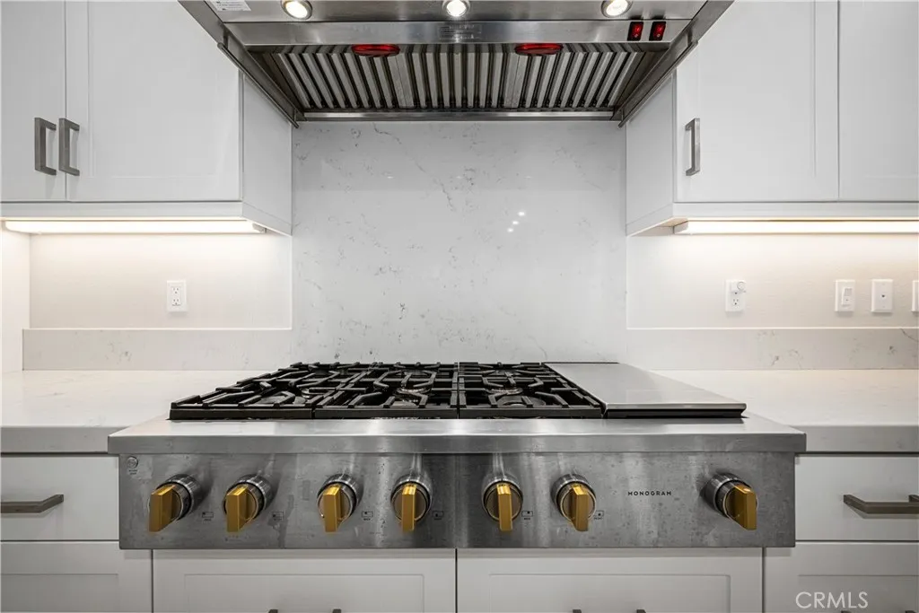 From the moment you enter, you are welcomed by soaring ceilings, abundant natural light, and a seamless open-concept layout that blends the living, dining, and gourmet kitchen areas. The chef’s kitchen showcases quartz countertops, a full designer backsplash, white shaker cabinetry with soft-close features, and premium stainless steel appliances including a built-in refrigerator.