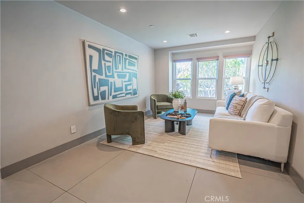 The kitchen showcases crisp white cabinetry, stainless steel appliances, and a seamless connection to the dining area, creating a welcoming space filled with natural light. The spacious living room is warm and inviting, complete with recessed lighting, abundant sunlight, and a cozy fireplace — ideal for relaxing evenings or gathering with family and friends.