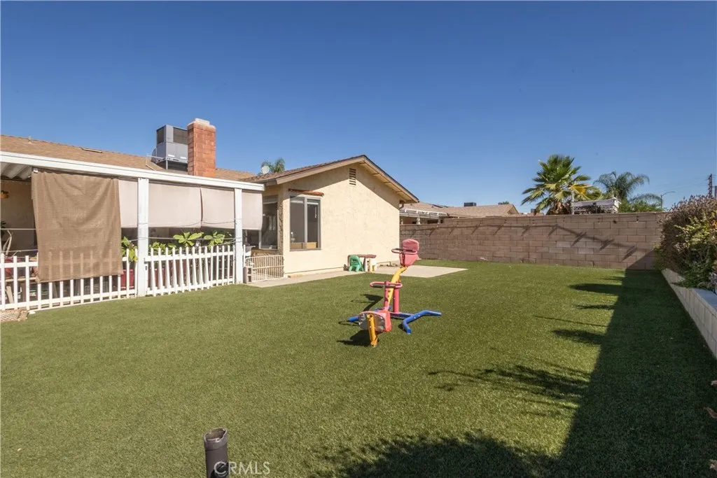 Pool Home! Senior living community tailored for those seeking a dynamic blend of comfort and entertainment. This spacious senior living environment offers ample backyard space, perfect for family gatherings and outdoor leisure. Picture yourself lounging by the newer swimming pool with a slide, surrounded by hardscape and two patio covers for shade. Enjoy the convenience of artificial turf and the privacy provided by block wall fencing. Inside, this home is designed for gatherings, featuring a formal dining area and living room with laminate flooring in neutral tones. Cozy up by the brick fireplace in the family room, or whip up culinary delights in the kitchen boasting granite counters, a large breakfast bar, and stainless steel appliances. The master bedroom offers serenity with mirror closet doors and views of the well-manicured backyard, while the guest bedroom provides ample space and easy access to the guest bathroom. The newer roof, HVAC and nice curb appeal make this home truly turnkey. Convenience is key, with commuter-friendly access to freeways, shopping, dining, and churches. Plus, take advantage of the HOA amenities including senior activities, pickleball courts, fitness rooms, and a refreshing association pool.