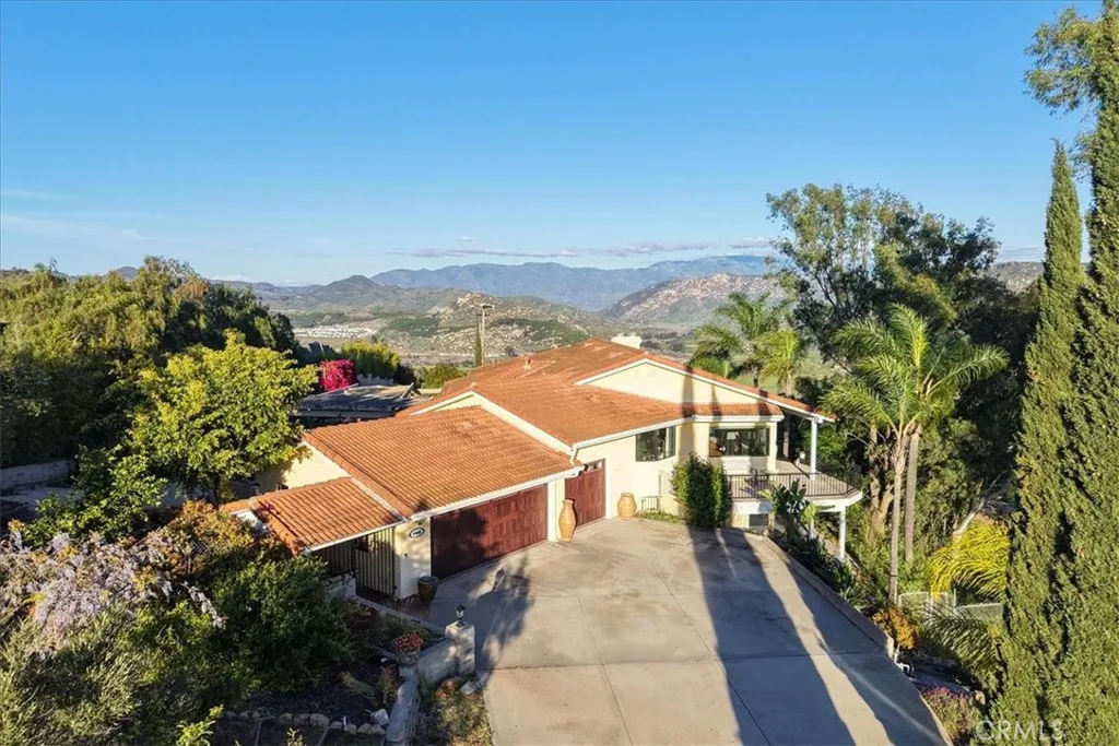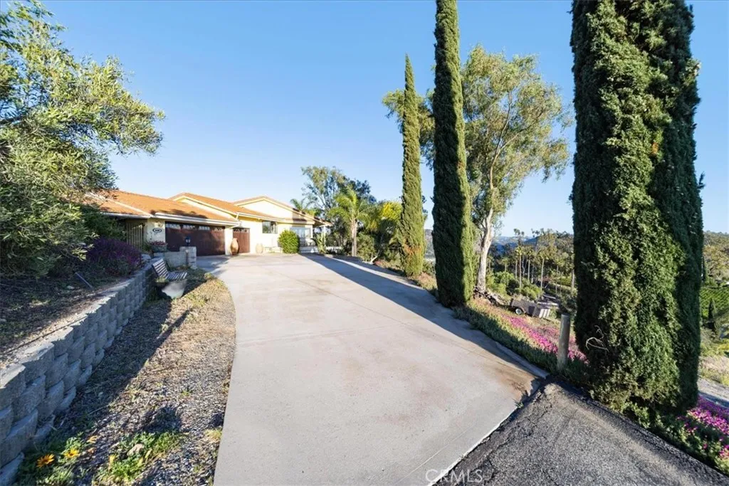 Welcome to this stunning, Mediterranean styled home! Enter through the Solar charged Automatic Gate up the driveway to the large parking area in front of the 3 Car Garages, where you immediately notice the gorgeous panoramic views to the West towards the ocean! As you enter on the side of the garage, you'll notice the Stone Tiled Patio area with plenty of space for entertaining. This area leads to the Double French Doors and into the Sunken Living Room, with real Wood Flooring and New Carpet. While relaxing in the Living Room you'll enjoy the High Beamed Ceilings with Recessed Lighting, Ceiling Fans, Built-In Cabinetry, and a custom Stone Wall Accent around the Fireplace. The Living Room room wraps around the Formal Dining Room and an additional space with a large window facing West with panoramic views. Next, exit one of the two Sliding Doors from these areas and step out onto the Veranda and enjoy the views and ocean breeze. The Kitchen provides three large windows with amazing views, plenty of custom cabinetry for storage, Blue Fire Brazilian Granite Countertops, a center Island, a Breakfast Bar, and stainless steel appliances. All of the Bathrooms have been completely remodeled with a modern flare with New Flooring, New Vanities, New Lighting, Subway Tiles and Glass Doors in the Showers. The Master Bedroom is located on the main level, so it feels like a single story home. The home provides a Central Vacuum System throughout. Water Heater is brand new. Double Garage Door is Wi-Fi. HVAC system is 9 years old. Also, you can enjoy evening panoramic views while sitting in the Hot Tub, which is included, along with the Fridge, Washer, & Dryer. The lower level offers 3 varieties Lemon trees, 2 varieties of Lime trees, a Macadamia Nut tree, Tangerine tree, Grapefruit tree, Olive tree, Avocado tree, and some Jujube trees. It could be used for a vineyard or a horse property or an ADU. Property is also conveniently located minutes from 76 HWY & 15 FWY, plus 30 minutes from Oceanside beach and Temecula wineries. Additionally, there are planning discussions for developing a shopping center on the northeast side of the 76 HWY and 15 FWY. It is anticipated the shopping center will bring restaurants and businesses, which will increase the convenience of living and will increase the value of the properties in the area. There is a Park & Ride parking lot nearby for commuters. This home provides a VA Assumable Loan at a super low interest rate. Call for details.