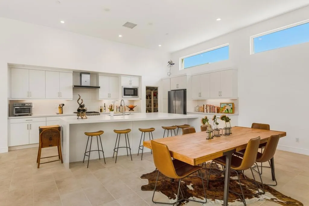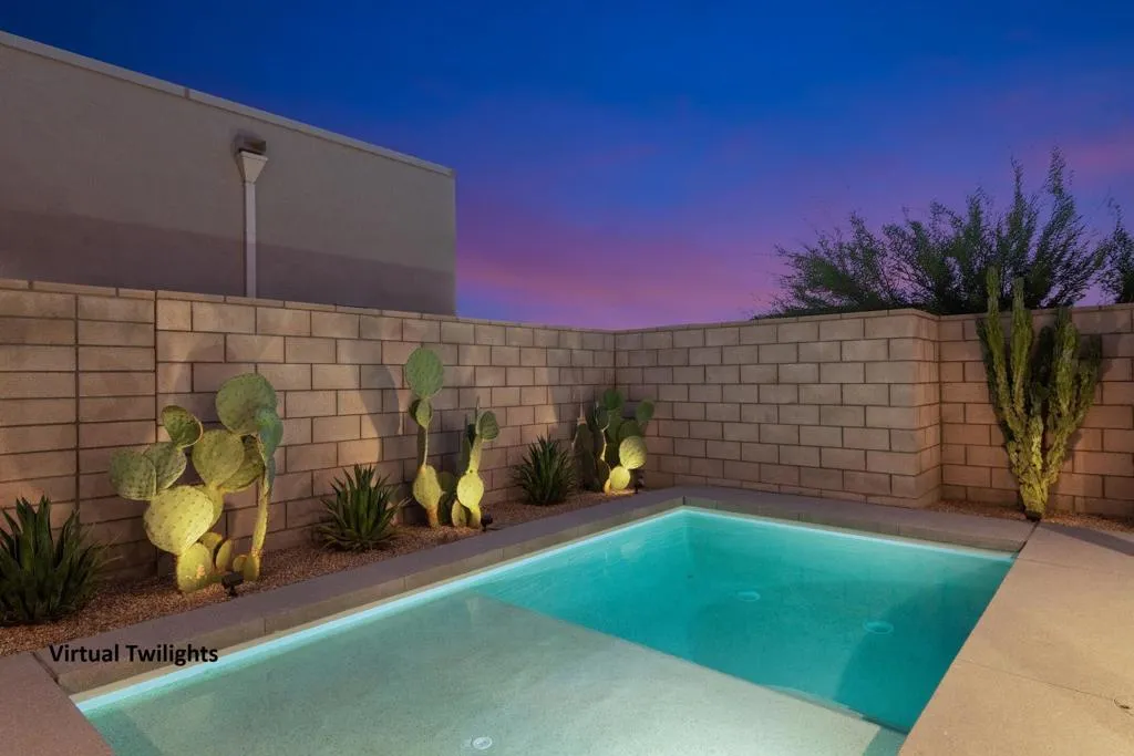 Reduced and priced to sell ! Exclusive private gated community of Miralon in Palm Springs, just minutes from downtown! This PLC Communities built home comes with OWNED SOLAR, providing energy efficiency, savings, and long-term value. The private yard features a sparkling 8x15 cocktail pool with tanning shelf and umbrella sleeve, outdoor shower, programmable pool heater, drip irrigation, and landscape lighting--all framed by a peek at the San Jacinto Mountains. Inside, the modern open floor plan is filled with natural light. The kitchen boasts premium Bertazzoni & Bosch appliances, a Samsung refrigerator with interior beverage center, crisp white cabinetry, and a large island with bar seating. Smart home upgrades include Brilliant switches, Honeywell smart thermostat, programmable exterior lights, Ring system, and keyless entry. All bedrooms are spacious, including a primary retreat with outdoor access. With 3.5 baths, three with walk-in showers, the home blends comfort and style. Community amenities include lakes, dog parks, walking trails, plus a clubhouse with pools, spa, gym, yoga/Pilates, bar, demo kitchen, herb gardens, olive tree groves and more!