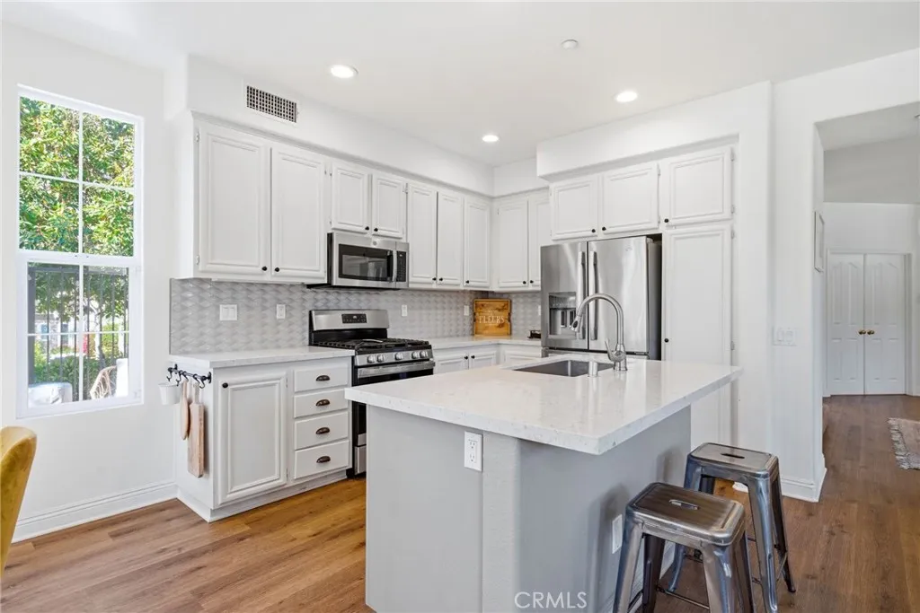 Tucked into a quiet cul-de-sac in the heart of Sycamore Grove, this beautifully remodeled 4-bedroom residence offers what is arguably the most desirable location and floor plan in the entire community. Positioned as a premier end unit, the home lives like a detached property -- attached only at the neighboring garage -- with added privacy, extra green space at the front, and direct access to the scenic walking path just beyond the backyard. Steps away from the park and surrounded by lush landscaping, the setting is both peaceful and idyllic. Offering over 1,800 square feet, this is the largest and most functional layout in Sycamore Grove, featuring a highly sought-after downstairs bedroom and full bath with shower -- ideal for guests, multi-generational living, or a private office. The remodeled kitchen showcases quartz countertops, a center island, designer backsplash, and stainless steel appliances, opening seamlessly to the family room and additional living/dining space. Upstairs, spacious secondary bedrooms, a full bath, and a generous primary suite with dual vanities, soaking tub, separate shower, and walk-in closet provide comfort and flexibility for modern living. Additional features include a full home repipe completed in 2023, central air conditioning, and EV charging in the attached two-car garage. With its rare end-unit placement, expansive feel, and exceptional privacy, this home truly stands apart. Residents of Sycamore Grove enjoy access to a beautiful private pool and nearby parks, all within the vibrant, award-winning community of Ladera Ranch, just moments from shopping, dining, trails, and everyday conveniences.