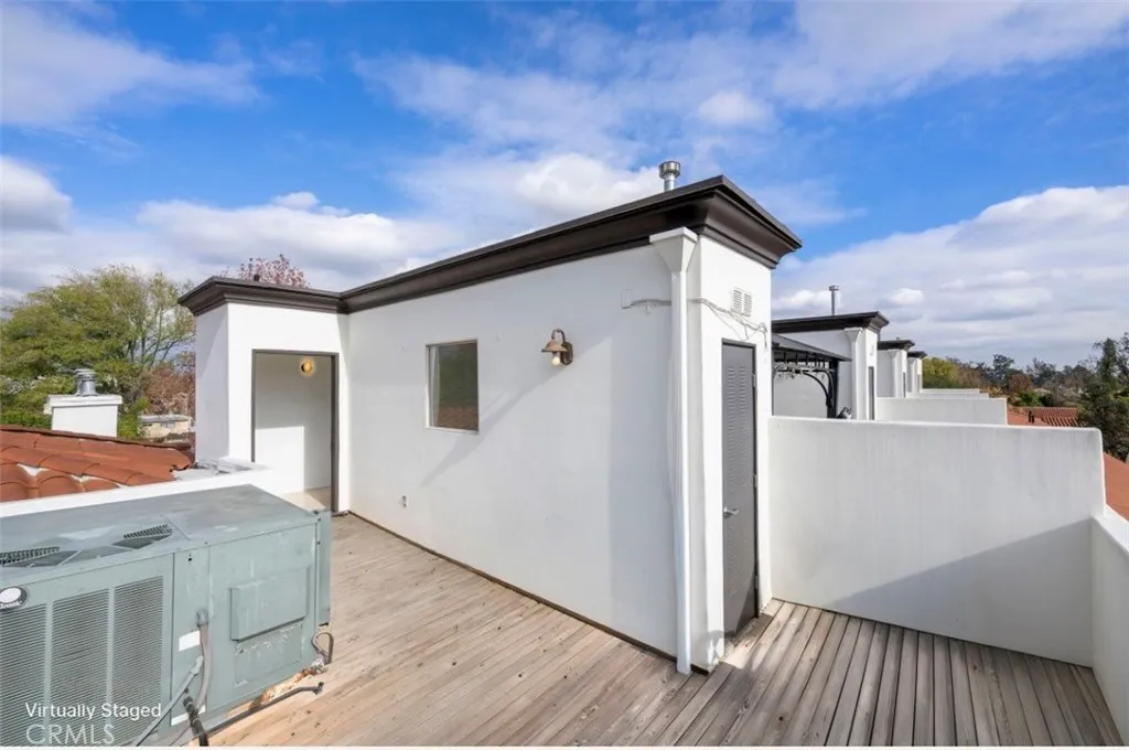 Excellent location in North Hollywood adjacent to Valley Village. Come fall in love with this beautiful Modern Mediterranean end unit on a tree lined street. This home is filled with natural light and an open living concept that are ideal for everyday living and entertaining. Clean lines, large windows, and a seamless flow throughout the living area. Open the sliding glass doors and enjoy the evening breezes. A beautiful front door is located on Hesby Street set back from Colfax that gives you the peace and serenity you desire. This end unit is part of a rare 5 unit building. High ceilings, beautiful light fixtures, hardwood floors, and plantation shutters are some of the features this home offers. Large kitchen includes stainless steel appliances, granite countertops, and opens to the dining area. Living room has a cozy fireplace and two balconies. The grand master bedroom has amazing high ceilings, a second fireplace, another balcony, and a walk-in closet. The spacious master bathroom has dual sinks, soaking tub for those long days and a walk-in shower. Two addition bedrooms with plantation shutters, a full bath, and an indoor laundry room are also located on that level. A roof top private terrace with city light views can be found on the top floor. A large private basement perfect for all your stuff is located on the bottom level. Two tandem parking spaces are in a gated parking garage. Conveniently located on a quite street close to schools, shopping, and transportation. This home blends architectural elegance with modern comfort. Come see it today.