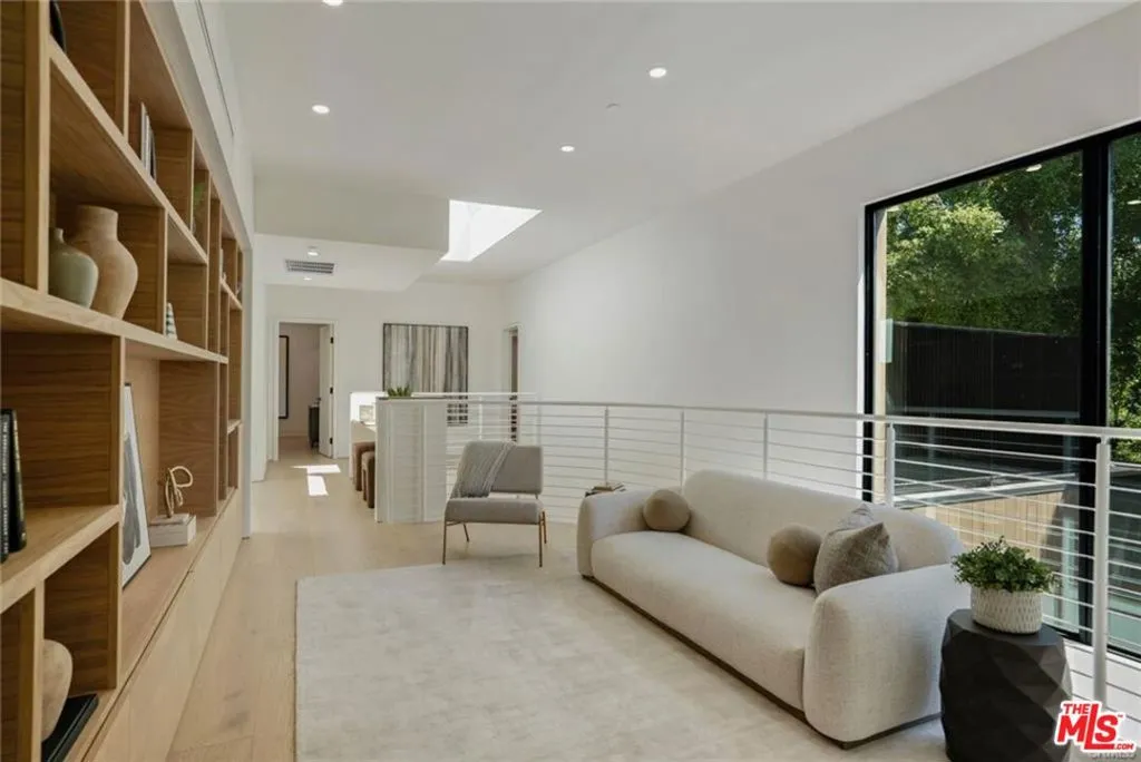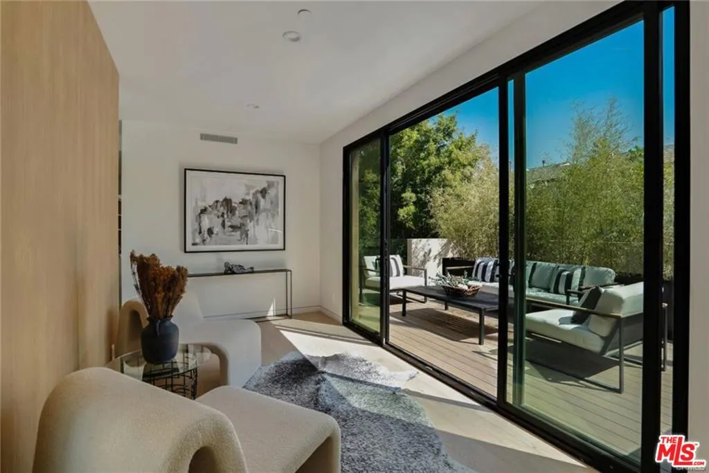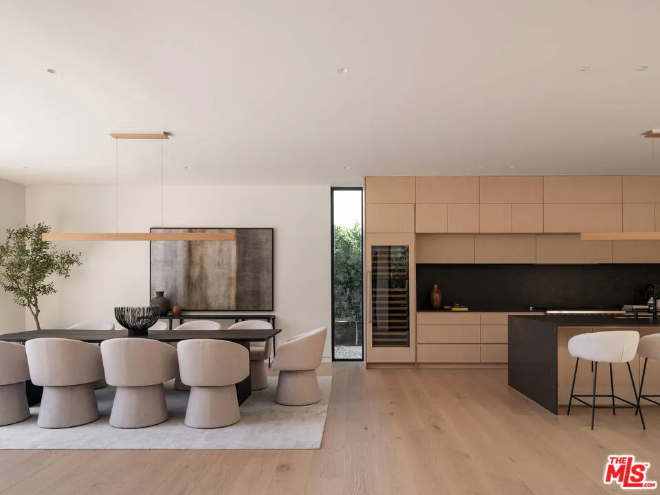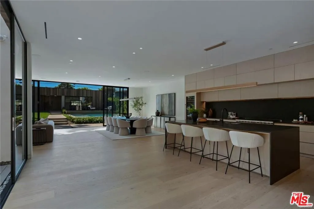 Enter an environment where the warmth of organic modern architecture meets stunning new luxury construction. Elegant 6BR + 5.5BA property sits on an almost 11,000 sqft lot + includes a 1BR + 1BA guest house w/its own address. Gorgeous open floor plan features sleek kitchen w/center island, quartz counters, white oak cabinets + stainless steel appliances including a Wolf 8 burner range w/double oven. Living room w/fireplace has huge sliders leading out to the extensive grassy grounds. Kitchen overlooks a private deck area w/Japanese landscaping. Both the kitchen + dining area have custom designed light fixtures. The gentle curves of the home's exterior can be found in details throughout the house, such as the fireplace, the curved corners of rooms + even the concrete steps throughout the exterior. The opulent primary suite has everything. Huge floor to ceiling windows slide open for viewing the amazing grounds. A separate area for lounging opens to a spacious side balcony. Two custom walk-in closets have extensive built-ins. Gorgeous primary bath w/soaking tub has an oversized shower w/dual rain heads + seating benches, plus double sinks + vanity area. Second level includes a sitting area/library w/dramatic skylight + 2 more ensuite BR's. An airy floating staircase connects the two levels, w/another 2BR + 2BA below. The grand living space is accentuated w/high ceilings, extensive use of glass + is infused w/a spectacular amount of natural light. Step outside + encounter the exceptional park-like oasis. An immense pool w/spacious baja shelf also includes a spa. Amazing outdoor entertaining area features stainless steel BBQ, a smoker, a refrigerator, a pizza oven, stainless steel sink + tons of cabinets. At the back of the private grounds sits the jewel of the property - a 1BR + 1BA ADU with 800 sqft that looks like a mini version of the main house, w/the same unique wood exterior + curves inside + out. The floor plan includes an extensive kitchen w/quartz center island + living room. It would make a great office or a multi-generational compound. The living space sliders completely open to the patio creating a perfect indoor outdoor flow. Its view looking out over the grounds + backside of the main house creates a dramatic backdrop for everyday living. This is a one of a kind property. Come satisfy your appetite for something new + break away from all the "modern farmhouse" + "modern box" replicants. And experience over 6,100 sqft of new architectural luxury.