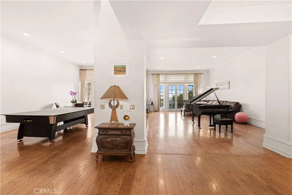 A dramatic grand entrance creates an unforgettable first impression, featuring a soaring foyer and an elegant spiral staircase that sets the tone for the home’s architectural sophistication. Expansive windows and voluminous ceilings fill the interiors with natural light, enhancing the sense of scale and refinement throughout.