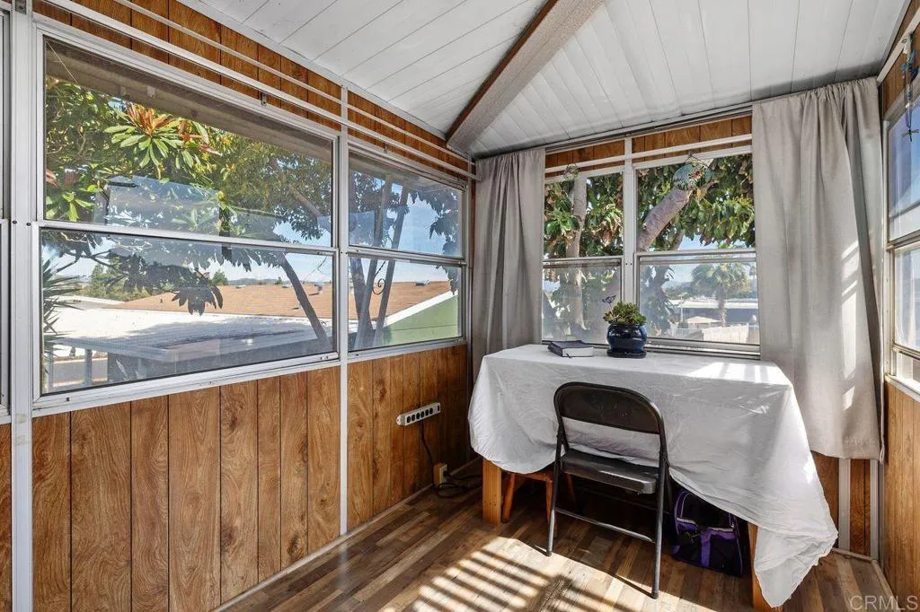 Nestled within a warm, active 55+/45+ community just moments from scenic Mission Trails, this beautifully updated residence offers comfort, style, and a daily connection to nature. Step onto the expansive back deck and take in sweeping views as you enjoy Santee’s most breathtaking sunrises. This is more than a home; it is a retreat designed for everyday living at its finest. The welcoming community features water exercise, poker, bunco, game nights, monthly potlucks, and twice-monthly bingo, plus a food pantry backed by local businesses. Residents enjoy a pool, spa, dry sauna, pool room, library, and card room. Inside the home, extensive upgrades include a gorgeous kitchen, spacious master bedroom, and updated appliances, windows, drywall, paint, and flooring. An attached multi-use room is off the deck. The Tuff Shed provides extra storage, and the prolific lemon, orange, and avocado trees create your own private orchard. Ideally located near shopping and dining, bus stops, and Big Rock Park, the home also offers 360-degree views of Cowles Mountain and the surrounding foothills. Whether savoring sunrise views, connecting with neighbors, or relaxing in serene surroundings and quiet nights, this home offers a lifestyle that feels both vibrant and tranquil. Welcome home.