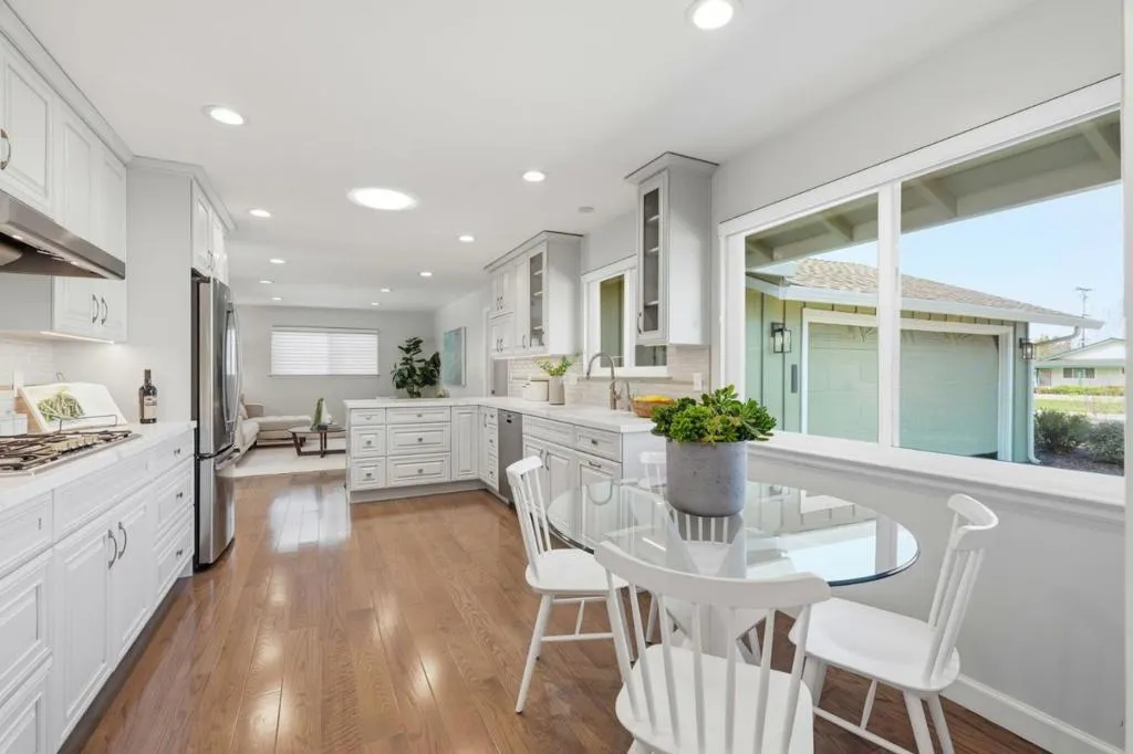 Over 500k of upgrades! Fantastic neighborhood with extra wide streets. Move right in and enjoy this extensively renovated, single level Ranch home, on a quiet and large lot. Beautiful finishes throughout includes hardwood floors, Chefs kitchen with quartz countertops, ceramic subway backsplash and 5 burner stove. Separate family room off kitchen. Primary suite includes a remodeled, well-designed bathroom with a double vanity with a marble top, walk-in shower with bench and a walk-in closet. Sun-filled living & dining area with walls of windows overlooking the covered patio and large yard with a gleaming swimming pool. Attached 2-car garage with fresh epoxy floor. Separate mud/laundry room with sink and 2nd refrigerator. A/C, upgraded electrical for EV charger. Professionally landscaped with drought-resistant plants and lovely wine producing grapevines. Close proximity to the shops and restaurants at the Pruneyard, Farmers Market, Downtown Campbell, Whole Foods, Los Gatos Trails and major Silicon Valley companies, VTA, light rail and major commuter routes