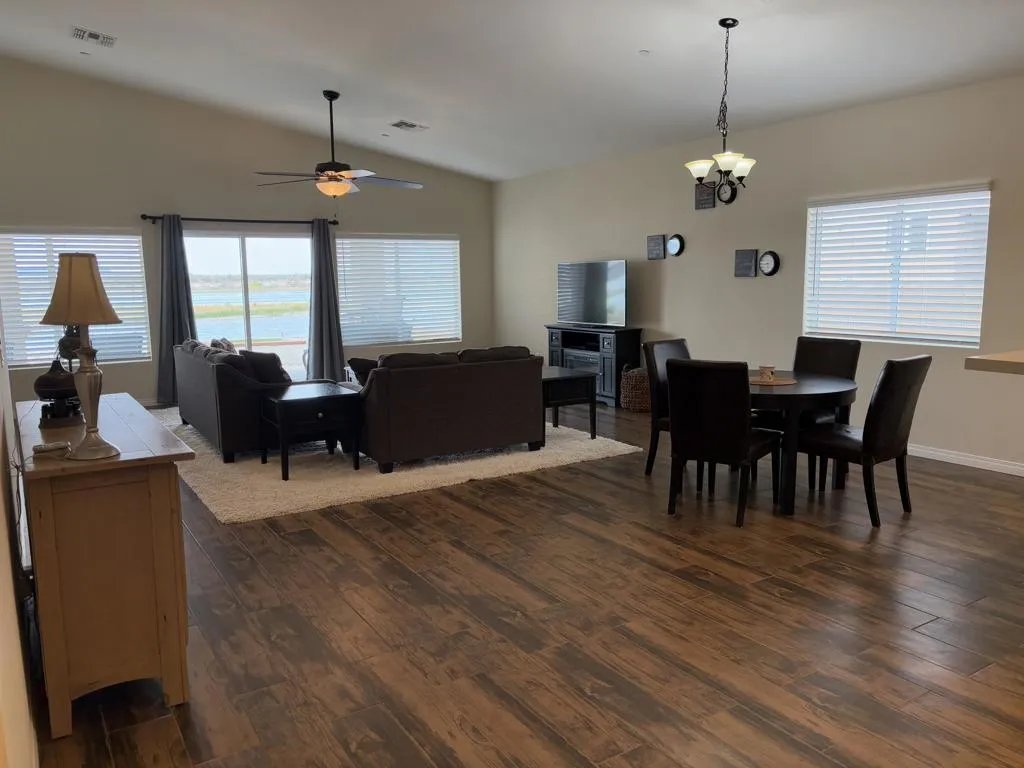 Riverfront Paradise: It's almost summertime--don't miss out on the ultimate riverfront lifestyle! This beautiful 3 -bedroom, 3-bathroom home offers unbeatable mountain and river views and sits right on the water. Bring your boat, jet skis, and your sense of adventure--this property comes with its own very accessible private dock, so you can jump right into the Colorado River whenever the mood strikes. Situated on a spacious lot, the home features a large garage perfect for al your water toys and outdoor gear. Inside, you'll find a comfortable , well maintained space with ceiling fans throughout to help keep you cool during those warm summer days and nights. Whether you're looking for the perfect family getaway, a full-time home, or a peaceful place to enjoy your golden years, this one checks all the boxes. This is a must see--make it yours before someone else does!