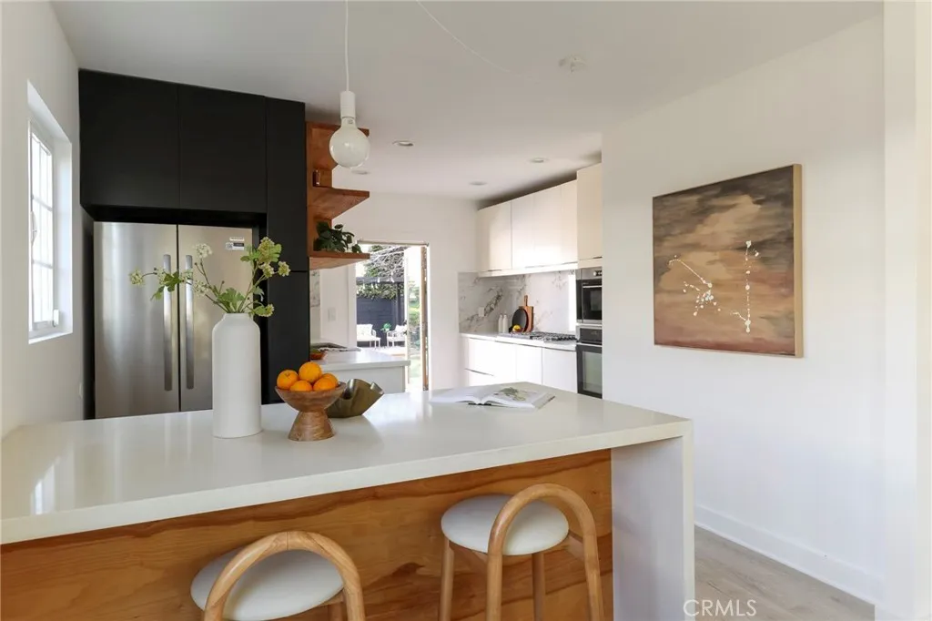 Charming 1923 Spanish Revival blending timeless character with modern upgrades and true California indoor/outdoor living. Classic smooth stucco exterior, arched details, and warm architectural charm create incredible curb appeal on a beautiful tree-lined street. Inside, this beautifully renovated 2-bed, 1.5-bath home feels open, airy, and larger than its square footage. The completely renovated main bath showcases exquisite taste with designer tile, new flooring, and a converted tub transformed into a glorious, refreshing walk-in shower. Additional indoor laundry has been thoughtfully added for everyday convenience. The updated kitchen flows seamlessly into the dining and living areas—perfect for entertaining. The primary suite features French doors opening to a serene, lush yard, creating effortless indoor/outdoor flow. Set on an expansive, pool-sized lot, the backyard offers multiple seating areas, a multilevel redwood deck, beautiful pergola, and room to garden or expand. With such a large yard, the converted garage space adds tremendous flexibility and value—ideal for an office, guest space, yoga studio, or gym—with potential ADU build-out possibilities (buyer to verify). Convenient Large backyard shed for extra storage. Thoughtful system upgrades include a new roof, updated electrical with EV charger, upgraded plumbing with tankless water heater, sewer line improvements, newer windows and doors, foundation seismic enhancements, and a recently installed security system (equipment available for buyer purchase/activation). Tranquil yet centrally located near Metro access, bike paths, and neighborhood favorites such as Jon & Vinny's, Hilltop Coffee + Kitchen, and Somerville, just to name a few. Only minutes to Culver City, Playa Vista, Downtown LA, and LAX, this location truly offers the best of convenience and community.