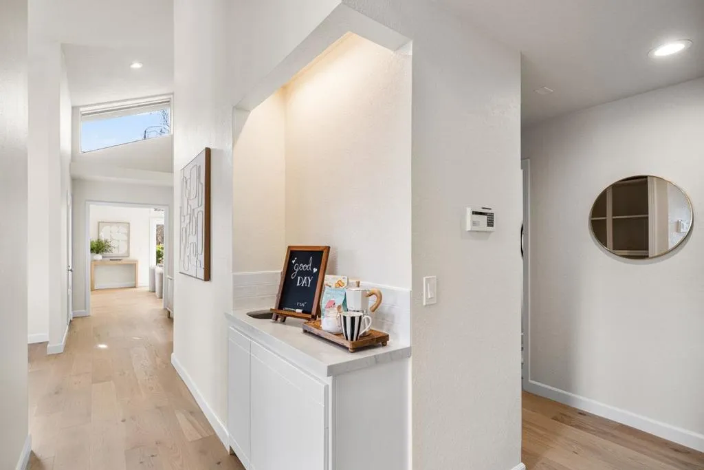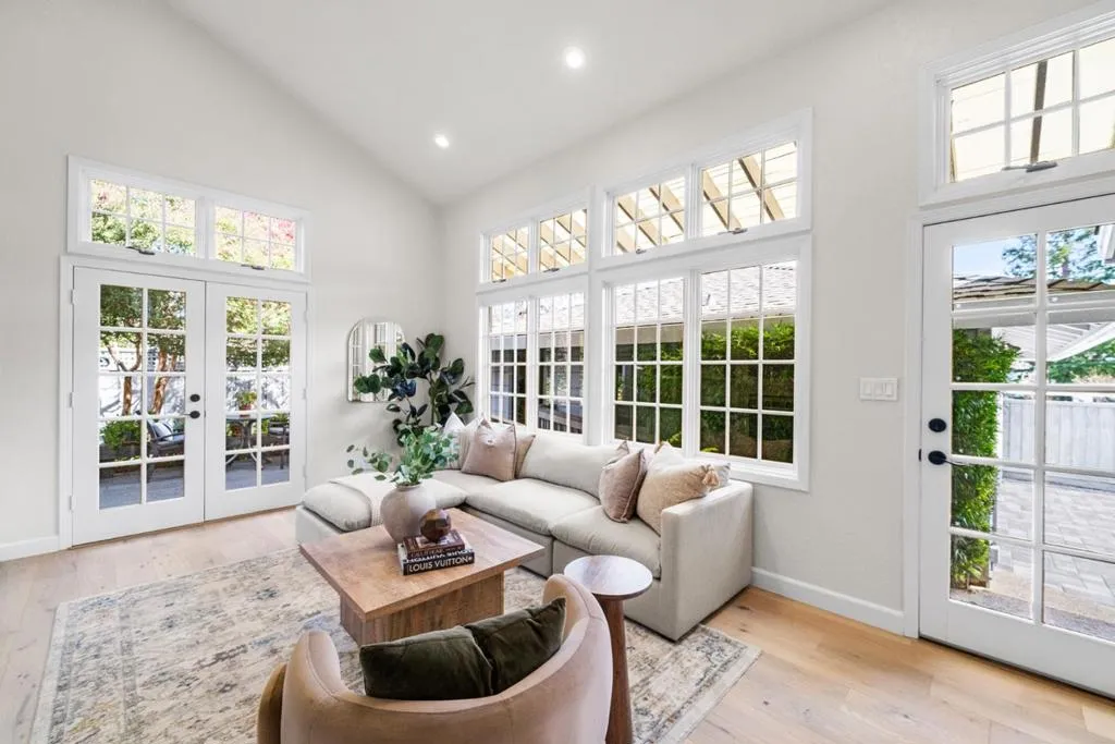 Nestled behind lush, mature landscaping, this updated single-story residence opens to a serene garden setting in Monte Sereno. Created for easy California living, the home pairs timeless design with refined improvements. A spacious, light-filled living room features French doors, vaulted ceilings, and a classic fireplace. The remodeled kitchen presents quartz countertops, stainless steel appliances, and a wet bar or coffee station. A welcoming family room surrounded by windows supports both entertaining and everyday comfort. The primary suite provides a calming retreat with a spa-style bath and walk-in closet. Notable features include brand-new wide-plank engineered flooring, fresh interior and exterior paint, recessed lighting, AC, a pull-down attic for additional storage and much more. . The unique front grounds include a spa set among established trees, blooming plants, succulents, and turf. In the rear yard, a deck spans the length of the residence, framed by natural greenery, along with a sunny corner ideal for a vegetable garden. A detached garage includes an epoxy-coated floor and overhead storage. The extended paver driveway is lined with orange trees. This special home is positioned on a quiet court, just minutes from downtown Los Gatos. Distinguished Los Gatos schools.