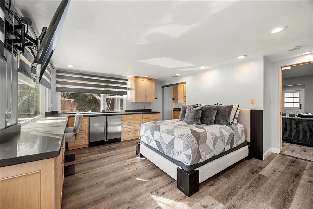 Rare opportunity for student housing investor or Chapman parent to own a versatile 5-bedroom, 6-bath single-story pool home near Chapman University, with the upcoming OCVIBE development (2027) and just minutes from Old Towne Orange and Disneyland. Situated on a quiet, tree-lined street, the property is ideal for multigenerational living and includes a permitted detached ADU with its own address at 636 E Adams. The ADU features a full kitchen with THOR 36" six-burner gas stove, upgraded appliances, living room, in-unit laundry, and two bathrooms, with plans to expand approximately 235 sq ft to add a second bedroom for additional rental income potential. The main home has a history of short-term rental use, while the ADU can also be rented independently. Strong demand for student rentals, proximity to Chapman University, local attractions, shopping, dining, and the stable sales history in the neighborhood all contribute to long-term income potential and value retention. The property offers flexible opportunities including long-term rental, student housing, or senior-living conversion, all subject to city regulations. Step inside the main residence to discover updated kitchens and bathrooms, double oven, soft-close cabinet doors, Viking six-burner gas cooktop, 8mm LVP flooring, leathered quartz countertops, and smart locks on all doors. The living room is filled with natural light from a skylight, anchored by a cozy fireplace and mantel, with generous closet space for storage. Single-level and ADA-compliant with a remodeled bathroom and wider doorways. Extensive infrastructure upgrades include major plumbing improvements, paid 24-panel solar system, solar pool heating, EV-ready 50-amp Level 2 charging, upgraded electrical and CAT6/7 wiring, Zoned HVAC system with UV-light technology and newer ducting in the attic, and energy-efficient heat pump systems. Lush front and backyard landscaping, inspired by the Disneyland Hotel, surrounds a waterfall pool, spa, and mature avocado, lime, and tangerine trees. The pool area is fully fenced with a removable mesh safety gate system. Additional amenities include generous parking, RV hookups with dump access, and storage structures. This home blends flexible living, resort-style amenities, and income potential in one of Orange’s most desirable neighborhoods. The list of upgrades goes on and on, a must see to appreciate!