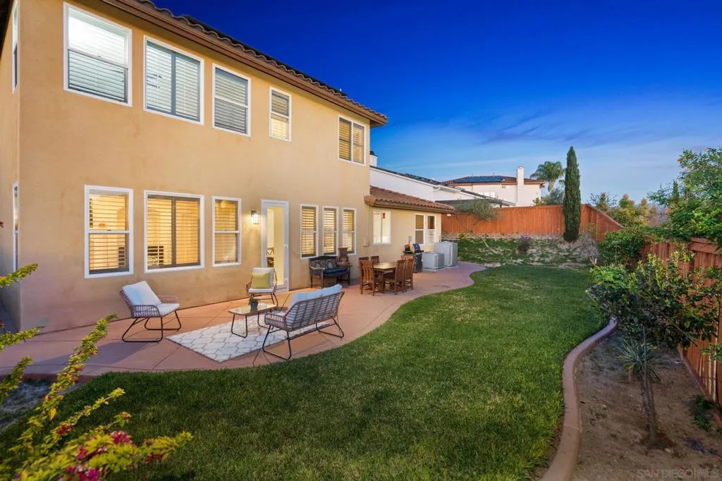 Discover this elegant and highly coveted Rolling Hills Ranch residence, gracefully positioned near the end of a peaceful, elevated cul-de-sac where sweeping views and natural beauty create a serene backdrop. Showcasing timeless Spanish-inspired architecture, the home’s stately curb appeal is enhanced by a wraparound balcony and mature, drought-tolerant landscaping that frames the façade with effortless charm plus OWNED SOLAR. Minimal to no electric bill! Inside, rich wood flooring sets the tone, leading into a luminous formal living room adorned with crown molding, plantation shutters, and classic interior archways that highlight a dramatic, winding staircase. The formal dining room is equally impressive, with soaring ceilings and abundant natural light creating an inviting setting for refined gatherings. Along the rear of the home, an expansive open-concept design seamlessly connects the family room—anchored by a warm fireplace—to a casual breakfast area and a thoughtfully designed gourmet kitchen. The kitchen blends function and style with extensive custom cabinetry, a generous center island, abundant quartz countertops, a deep farmhouse sink, a five-burner gas range with pot filler, and premium finishes throughout. Designed to accommodate a variety of lifestyles, the main level offers two bedrooms and two full baths, providing flexibility for a private guest suite, multigenerational living, or a dedicated home office with its own entrance. Upstairs, the luxurious primary suite is a true retreat, capturing scenic oceans views and featuring crown molding, a spa-inspired bath with a soaking tub, separate shower, dual vanities, and an expansive walk-in closet. Two additional bedrooms with balcony access share a well-appointed Jack-and-Jill bath, completing the upper level. The inviting backyard offers an ideal setting for both intimate relaxation and vibrant entertaining. Additional highlights include no Mello-Roos, central air conditioning, a whole-house fan, enhanced wall insulation, and added garage storage. Residents of this prestigious community enjoy resort-style amenities including five pools and spas, nearby parks and playgrounds, and access to top-rated schools—all just minutes from Montevalle Recreation Center, shopping, dining, and convenient freeway access.