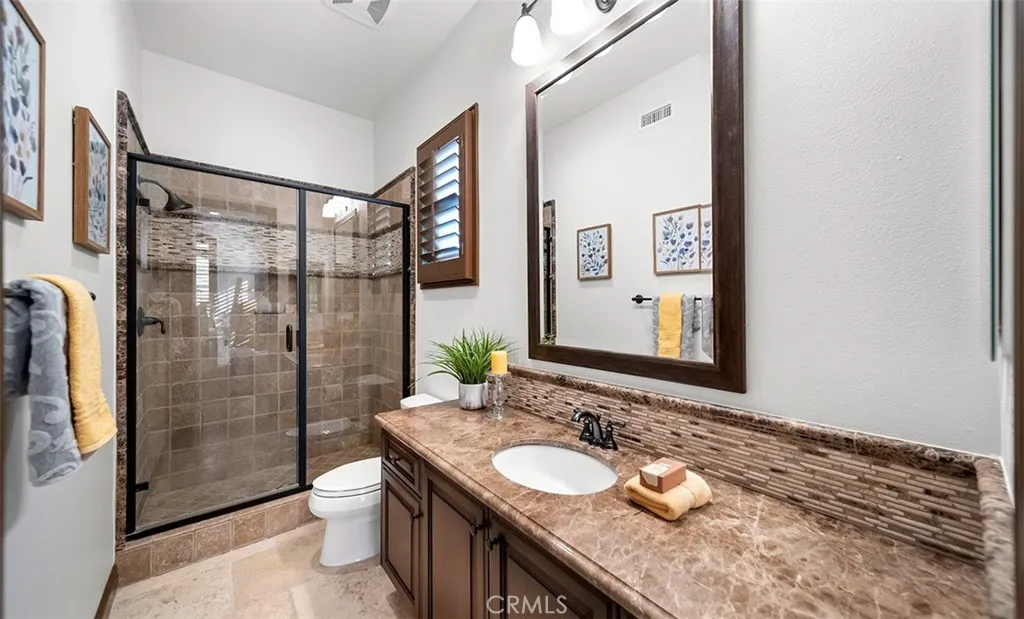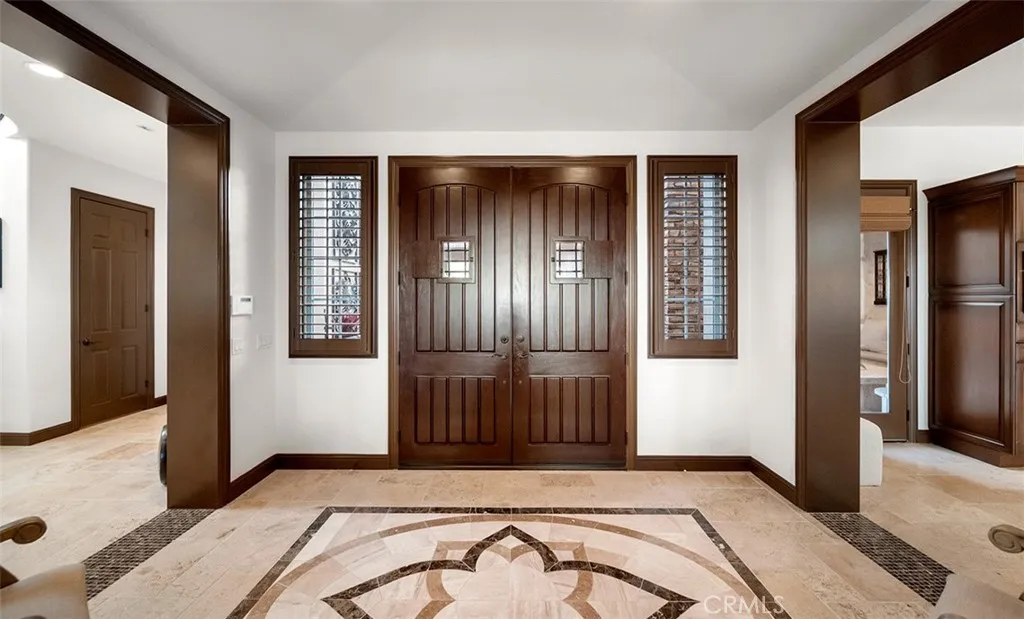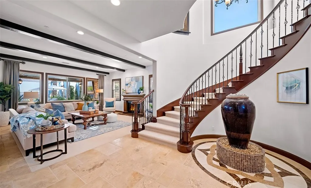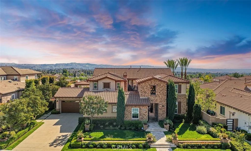 Tucked into the hills of Yorba Linda, Amalfi Hills is home to 4111 Cortona Court. It is the kind of VIEW home that makes everyday life feel elevated. A former Toll Brothers model on a single loaded street, with a 4 car garage and sits on an expansive 16,500 square foot VIEW lot where sunsets stretch across the horizon and Disneyland fireworks sparkle in the distance. From the moment you step through the grand entry, the tone is set. An enclosed courtyard features a dual sided fireplace and flat screen TV. At the heart of the home, the chef’s kitchen anchors everything with premium granite counters, built in stainless steel appliances, and a generous center island for homework, appetizers, and late night conversations. Nearby, a dedicated Casita (aka wine room) with a hidden space for valuables invites you to slow down and celebrate the wins. The layout is designed for real life and real privacy. A downstairs bedroom with a full bath gives guests or extended family their own comfortable space, and an office off the kitchen adds day to day function. Fresh carpet pairs with timeless tile throughout for a warm, move in ready feel. And for everyday efficiency, the home includes paid off solar panels. It feels polished, warm, and ready for quiet mornings or full house gatherings. The courtyard becomes a daily retreat, and the view lot gives you space, and privacy you rarely find in this community. The primary suite lives like its own private wing with sweeping views, a balcony for city lights at dusk, dual closets, dual vanities, dual toilets, and a spa inspired bath with a custom soaking tub. On the opposite wing, two ensuite bedrooms and a large walk in laundry room along with a loft with a full bath offers flexibility as a lounge, media room, or sixth bedroom option. Then the home delivers true indoor outdoor living. Accordion style doors open to a covered California room with in ceiling heaters, a fireplace, TV, and dining under the stars. The custom outdoor kitchen includes a BBQ, fridge, ice maker, sink, and cooktop for pool days and get togethers. Out back, the setting feels like a private resort with water features, stepping stones, underwater tunnels, and an infinity edge spa. Lounge in the sun or relax in the shade, with a grassy area for kids and pets. 4111 Cortona Court is the ultimate Yorba Linda lifestyle, space to host, space to recharge, and a place to build traditions in one of the city’s most sought after communities.
