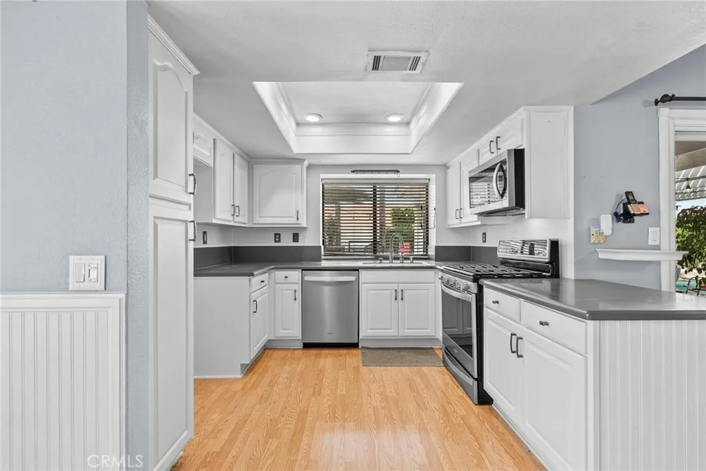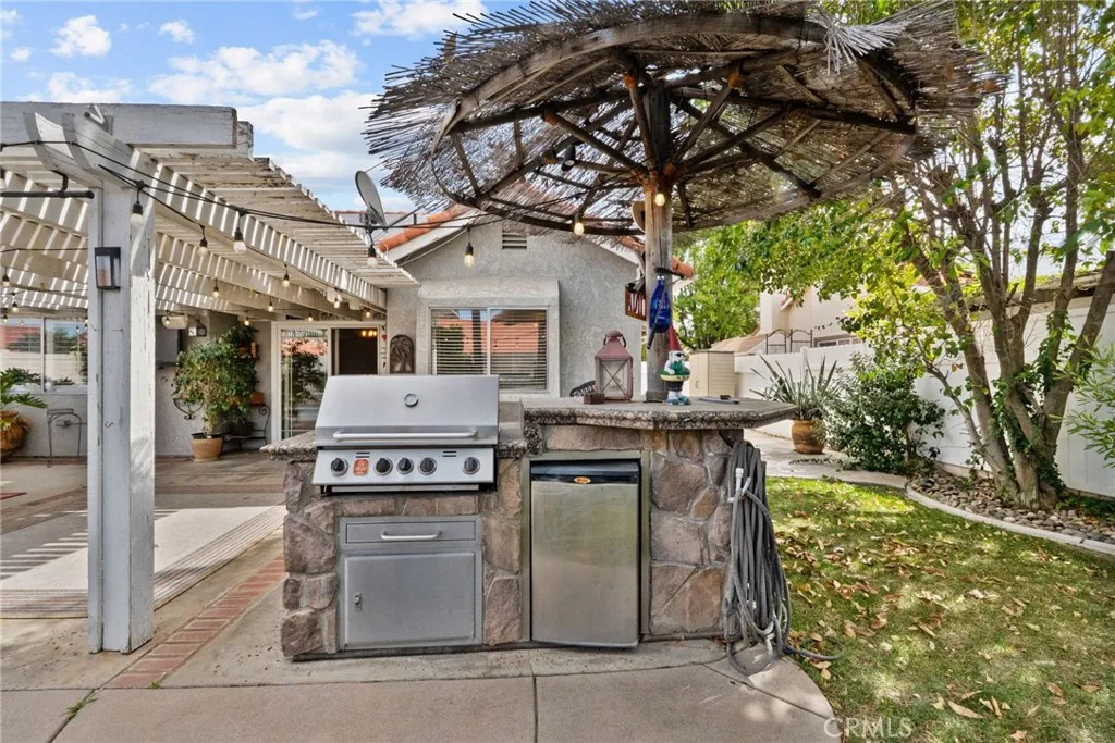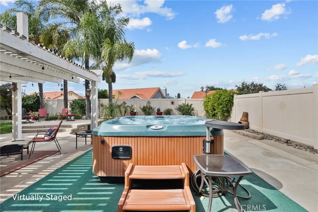 Welcome to this move-in ready gem offering 1,323 square feet of thoughtfully designed living space on an expansive 7,405 square foot lot in a quiet, established neighborhood. Built in 1988, this home features vaulted ceilings in the living area that create an open, airy feel filled with natural light. The functional layout includes a charming breakfast nook and beautifully updated bathrooms that add a modern touch. Step outside and experience true Southern California living. The spacious backyard is designed for entertaining, complete with a sparkling pool, jacuzzi, built-in BBQ, and a shaded patio perfect for relaxing on warm afternoons. A shady front porch adds even more inviting outdoor space. Additional upgrades include epoxy garage floors, vinyl fencing, leased solar for energy efficiency, newer HVAC, and a newer water heater — giving you comfort and peace of mind. Located close to shopping, schools, and dining, this home offers convenience without sacrificing tranquility. No HOA and situated in a low tax area. This is the kind of property buyers wait for — well-maintained, upgraded, and ready to enjoy.
