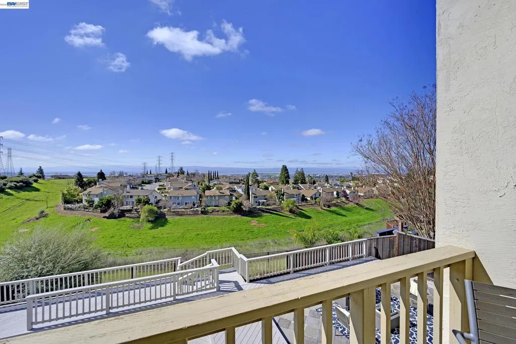 Located in the highly sought-after Mission San Jose area with access to top-rated schools including Mission Valley ES, Hopkins Middle, and Mission San Jose High (buyer to ascertain availability), this desirable northeast-facing home offers sweeping valley views and backs to open hillside space with no rear neighbors for exceptional privacy. Bright and filled with natural light, the home features large windows and vaulted ceilings that enhance the airy interior while capturing scenic views of the surrounding hills and valley. The thoughtfully designed floor plan includes hardwood flooring, a dramatic two-story entry, formal living and dining areas, and a spacious family room with brick fireplace. The remodeled kitchen showcases granite countertops, a large center island, stainless steel appliances including double wall ovens, and an adjoining breakfast nook overlooking the backyard deck. Upstairs, the primary suite features vaulted ceilings, beautiful views, and a private balcony, while the primary bath includes dual vanities, a soaking tub, and separate shower. An expansive multi-level deck provides excellent space for outdoor entertaining while enjoying the panoramic surroundings. Additional features include an owned solar system, central A/C, and 240V outlet for EV charging.
