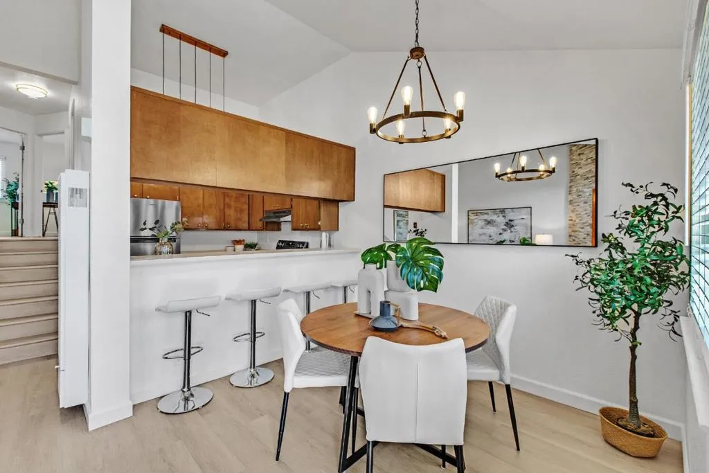 Exceptional 2-bedroom, 2-bathroom condominium in a premier complex location featuring fresh new vinyl flooring, paint, light fixtures, blinds, and dual-pane windows throughout. Top floor corner unit. Bedrooms offer mountain views, vaulted ceilings, ceiling fans, and abundant storage, complemented by in-unit laundry with washer and dryer included. The living room showcases an updated modern fireplace, while the kitchen provides ample cabinets, a new range, and generous counter space all supported by a new wall heater and water heater for optimal efficiency. Ideal parking includes 1-car garage parking plus assigned carport, with community amenities featuring a pool, clubhouse, and beautifully maintained grounds. Conveniently located near Highways 101, 280, and 680 for seamless Bay Area access. Minutes away from SJSU, SJC airport, downtown San Jose.