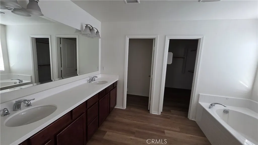 Rare opportunity to rent a 5 bedroom new home with a Next-Generation separate entrance of a primary suite on the first floor. Brand new flooring and painting, washer dryer and refridge included in the rent. Located in the highly desirable Summerly Community in Lake Elsinore, this beautiful home offers space, versatility, and stunning potential lake and mountain views. The home offers 5 bedrooms and 4 bathrooms, including two owner suites and a private guest house with its own entrance, ideal for extended family, guests, or a dedicated workspace. The spacious living area flows into a chef’s kitchen with a large island, granite countertops, abundant cabinetry, and a pantry, making it perfect for entertaining. A separate formal dining room adds an elegant touch for gatherings. Upstairs includes a loft area, generously sized bedrooms, an oversized primary suite with a walk-in closet and custom organizer, and a convenient indoor laundry room. A flexible den can serve as a home office, playroom, or optional 5th bedroom. The property also features an attached garage, wide private driveway, and a cozy backyard, ideal for relaxing or entertaining outdoors.