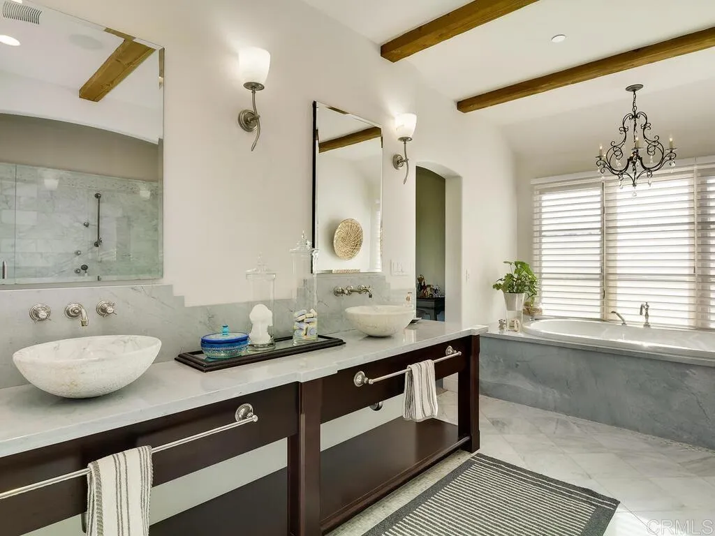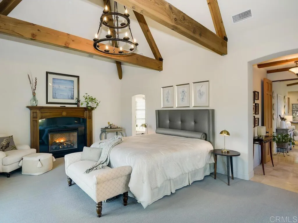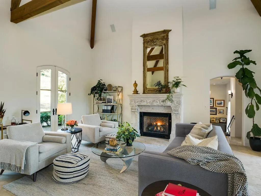 French Country architecture meets vineyard-view living in this custom estate designed by renowned architect Jack Arnold. Privately set on 3.86 acres overlooking Moody Creek Farms and the scenic Bonsall Valley, this 4,052 sq. ft. residence offers timeless design, panoramic views, and exceptional privacy. Expansive windows throughout the home capture panoramic vineyard and valley views while filling the interior with natural light. High-beamed ceilings and spacious living areas create an inviting sense of openness and warmth. The primary suite is conveniently located on the main level, offering privacy, comfort, and direct access to the surrounding landscape. A striking spiral staircase leads to a private guest bedroom and bath, while an additional stairway leads to a large upper-level room currently used as a media room that could easily function as a third bedroom, studio, or flexible living space. Outdoor patios provide ideal spaces for entertaining, relaxing, or enjoying the surrounding vineyard and valley scenery. The nearly four-acre property offers exceptional privacy and room for gardens, outdoor living enhancements, or future improvements. Zoned for horses, the property offers potential for equestrian use while currently maintaining a serene rural setting. Located in the desirable Bonsall area of North San Diego County, this custom estate offers a rare opportunity to enjoy architectural character, vineyard views, and the tranquility of country living within reach of coastal communities, golf, and regional amenities.