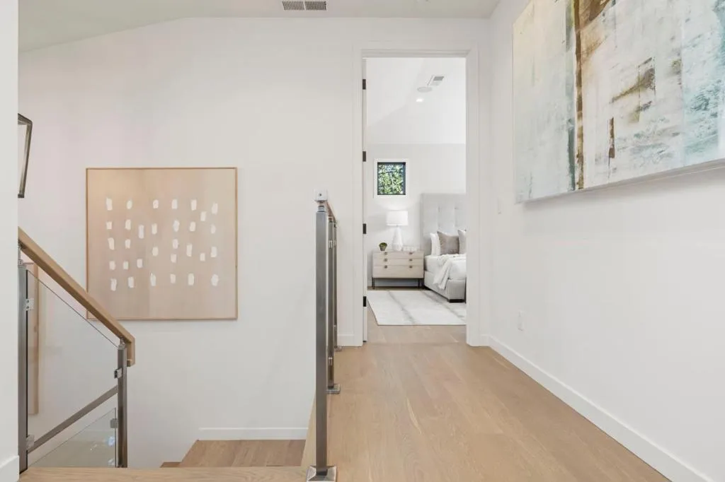 Built in 2018 by the owners for their family, this home in coveted Linfield Oaks reflects thoughtful design for easy California living. 9' ceilings are grounded by solid 6-inch white oak flooring throughout, creating warmth and continuity. Just off the foyer, a formal parlor with a concrete cast fireplace provides a welcoming space for conversation or quiet retreat. The open great room forms the heart of the home, anchored by a Porcelanosa-clad fireplace and a dramatic 15-ft wall of panoramic glass doors that fully retract to the patio and yard for seamless indoor-outdoor living. The chef's kitchen centers around a generous quartz island and equipped with a Thermador appliance suite. A main-level bedroom suite offers flexibility for guests, office, or multi-generational living. Upstairs, the vaulted primary suite features clerestory windows and a Porcelanosa-tiled bath with a freestanding resin soaking tub. Two additional bedrooms share a tandem bath. Two-zone HVAC with A/C controlled by Nest, Navien tankless water heater, two EV chargers, and conduit for potential ADU expansion. The best of Menlo Park unfolds just beyond the front door: blocks to Burgess Park & Community Center, pedestrian bridges into downtown Palo Alto, & minutes to downtown Menlo Park, Stanford, and US 101.