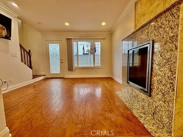 This 2 bedroom 1 bath 2 story townhouse/condo was built in 2008. The unit has travertine and hardwood floors throughout , granite countertops, granite fireplace, dual paned windows, and stainless steel appliances including refrigerator. The unit comes with a stackable washer/dryer and attached 2 car garage. There is a fireplace and TV included in the living and already mounted and ready to use. The unit has crown molding and high end finishes throughout. It also has vaulted ceilings, a private enclosed patio/yard area plus 2 balconies and is located on the corner of 18th Street and Pomona, only a few blocks from Newport Beach and 1 block from the Costa Mesa Civic Center, a park, school and The Triangle shopping and entertainment complex. The property is located in the Newport Mesa Unified School District and schools in the district for this property include: Pomona Elementary School, Ensign Middle School and Newport Harbor High School. Units is available for immediate move in for 1 year lease or longer.