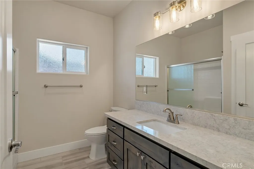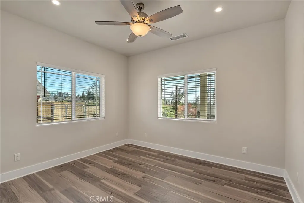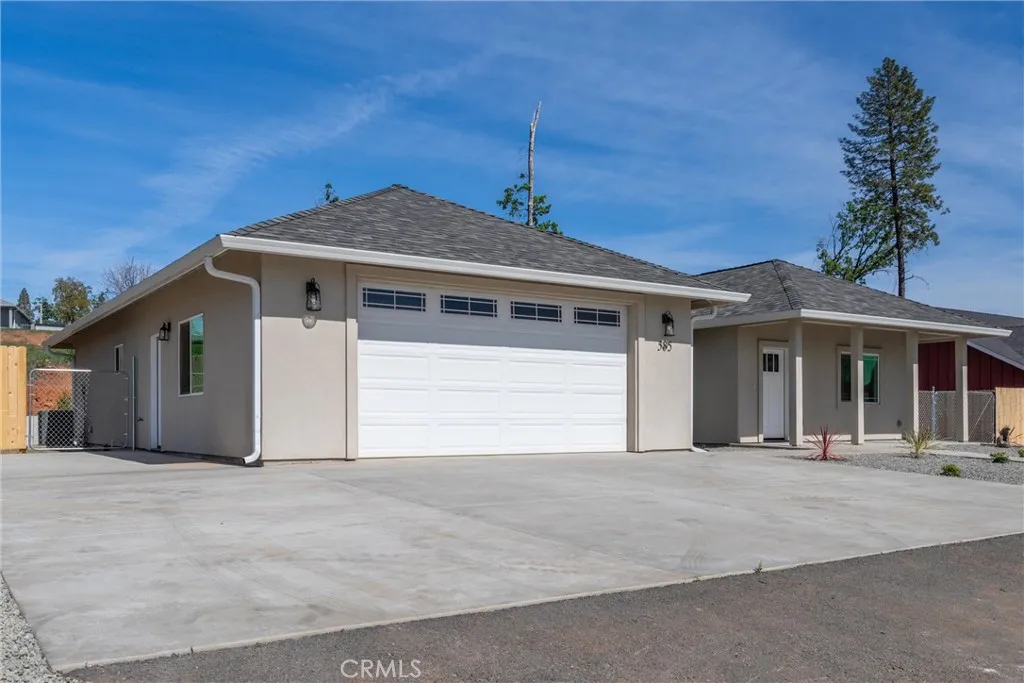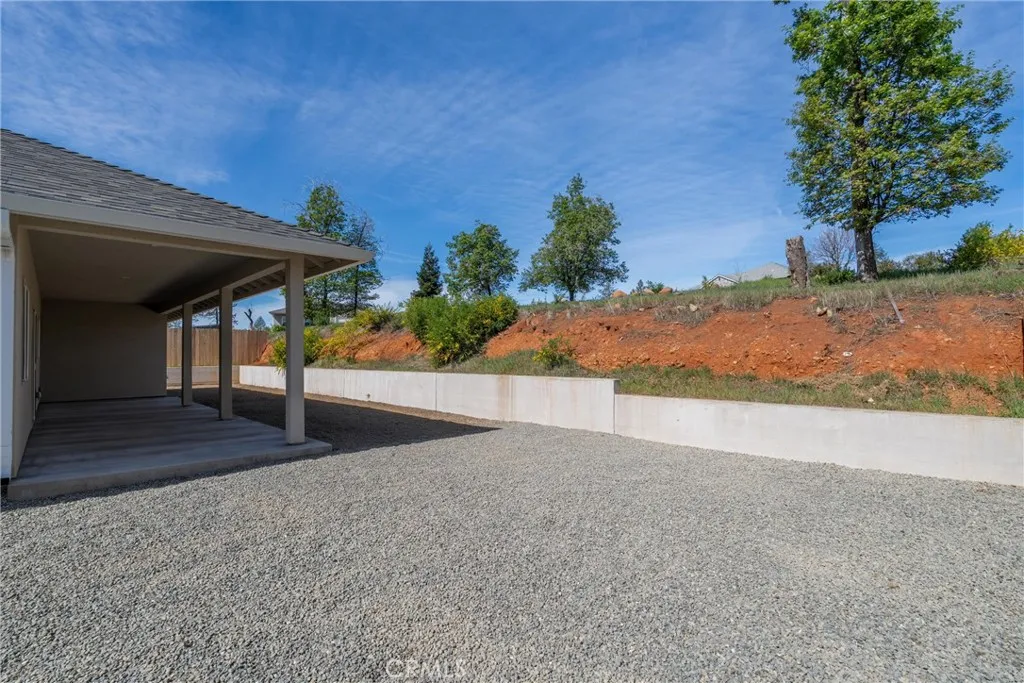 Welcome to this beautifully crafted 2022 home built by reputable local builder Martin Construction, known for quality workmanship and thoughtful design. This 3 bedroom, 2 bathroom home offers 1,620 square feet of comfortable living space and has been recently refreshed with new luxury vinyl plank flooring and fresh interior paint, creating a bright and inviting interior. The kitchen features quartz countertops, custom knotty alder cabinetry, and recessed lighting, offering both durability and style. Dimmable lighting throughout the home allows you to easily create the perfect atmosphere in every room. Designed with comfort and efficiency in mind, the home includes a whole house fan and return air vents in every bedroom to help maintain consistent temperatures throughout the house. Storage is abundant with additional closets located in the hallways and bathrooms, providing practical everyday convenience. The laundry room is thoughtfully designed with built-in cabinetry and a functional mud bench complete with coat hooks, creating the perfect drop zone for shoes, bags, and everyday items while keeping the home organized. The primary suite offers a relaxing retreat complete with a bench seat in the shower. Window blinds are installed throughout the home for added privacy and convenience. The insulated garage includes an extra 220-volt outlet and offers approximately 3.5 feet of space on either side of the garage door, making it functional and easy to navigate. Outside, the property is nicely landscaped with a sprinkler system servicing the front yard plants and trees, and an improved driveway provides additional parking options. A standout feature is the approximately 22-foot-wide gravel side yard, ideal for RV or boat parking. The covered back patio creates a great space to relax or entertain while enjoying the outdoor setting. This thoughtfully built home combines modern construction, quality finishes, and functional upgrades, making it a wonderful opportunity in Paradise. Fire insurance quote from Sage Sure came in at $1,390 annually.