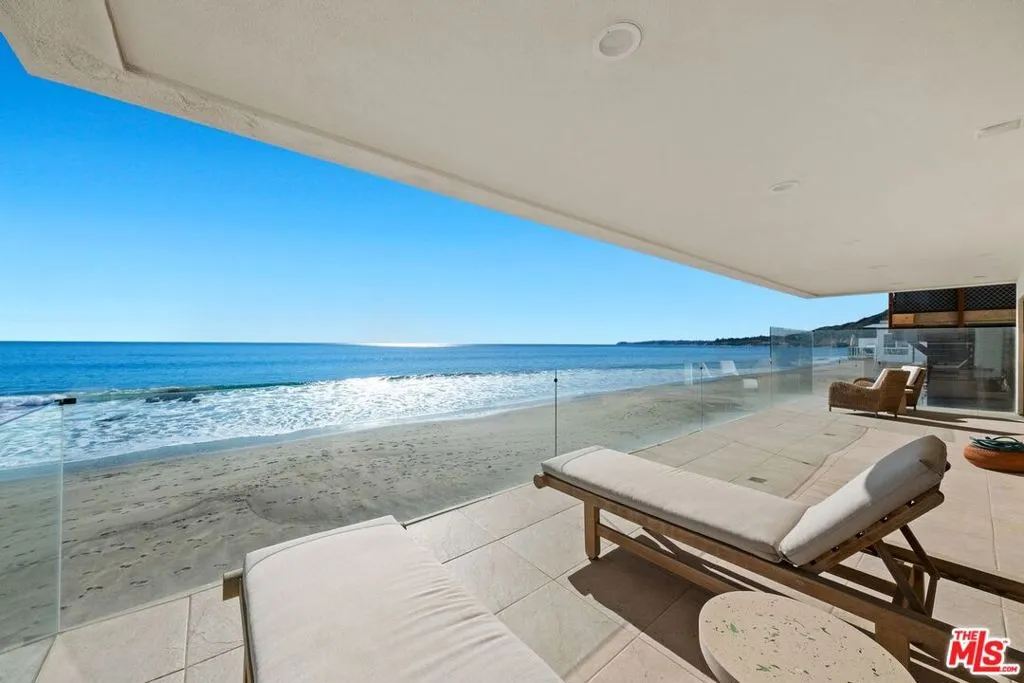 Fully furnished and ready for move-in immediately!! This property spans 50ft on the deepest section of beach on Malibu Rd & has unobstructed panoramic ocean views of Santa Monica Bay, Catalina & Point Dume. The property features a dual gated entry, driveway w/ ample secure parking & courtyard that leads to the custom fossilized front door. The main floor is expansive & features an open floor plan w/ formal dining area, living area w/ double-height ceiling & newly remodeled kitchen w/ a massive marble island, custom cabinetry & brand-new stainless-steel appliances by Viking and Wolf. An abundance of natural light fills the space w/ a large skylight & floor-to-ceiling sliding glass doors that open to a large balcony w/ glass railings that span the width of the house. The primary suite encompasses the entire top floor w/ his & her walk-in closets, custom blue marble bathroom w/ dual vanity & water closets, skylight & soaking tub w/ ocean views. The primary bedroom features a fireplace & sliding glass doors that lead out to the balcony & west facing sunset views. The bottom floor features three additional en-suite bedrooms, one of which is oceanfront w/ direct balcony access & the other has triple bunkbeds. Lastly, there is an oceanfront den, laundry room & private beach access. Centrally located off PCH in the highly desirable Malibu Rd community w/ easy access to world class dining at Nobu or Lucky's, designer shops in the Country Mart & countless miles of hiking at Bluff's Park & Puerco Canyon.