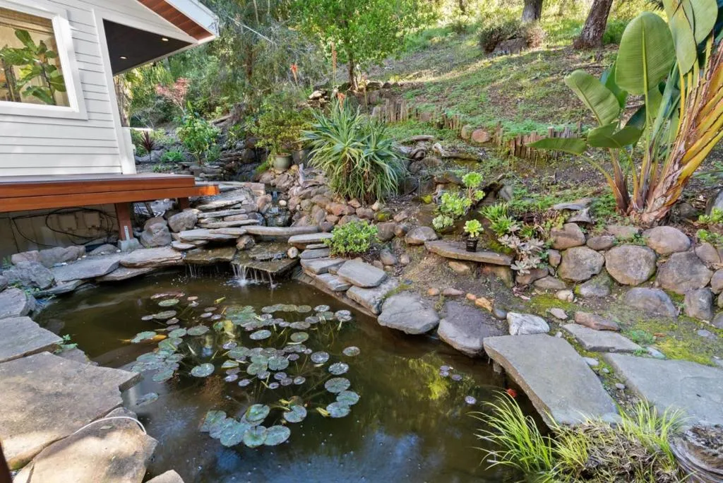 Escape to your own private sanctuary in the redwoods set on more than 3.5 acres of peaceful, private grounds. The beautifully crafted 3-bed, 2.5-bath main residence is complemented by a charming detached 2-bed, 1-bath guest cottage, offering over 3,000 sq.ft. of thoughtfully designed living space. Inside, artisan-crafted woodwork and a sophisticated blend of flooring elevate every room. The gourmet kitchen is a true centerpiece, featuring quartzite counters, custom cabinetry, high-end appliances, and a large center island. Light-filled living and dining areas sit beneath skylights and flow seamlessly to decks overlooking the redwoods. The luxurious primary suite offers a spacious walk-in closet, soaking tub, and direct access to a hot tub for a spa-like retreat. Outdoors, a soothing rock waterfall and koi pond create a resort-inspired setting perfect for relaxing or entertaining. The remodeled guest cottage provides exceptional flexibility for visitors or extended family, while a three-car garage adds convenience and ample storage. Perfectly positioned between Santa Cruz and Scotts Valley, the property offers quick access to the amenities of both communities while feeling a world awaymaking it an ideal retreat for commuters seeking serene privacy upon returning home.
