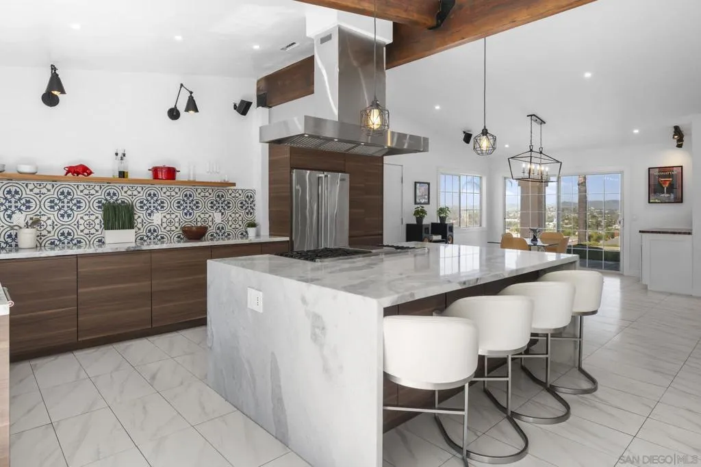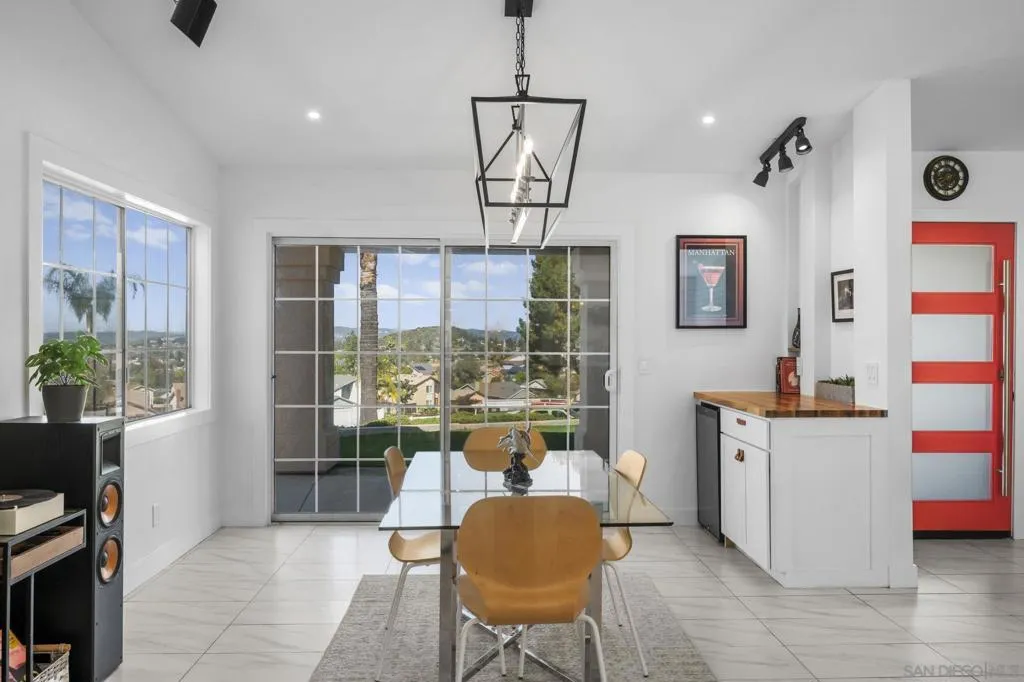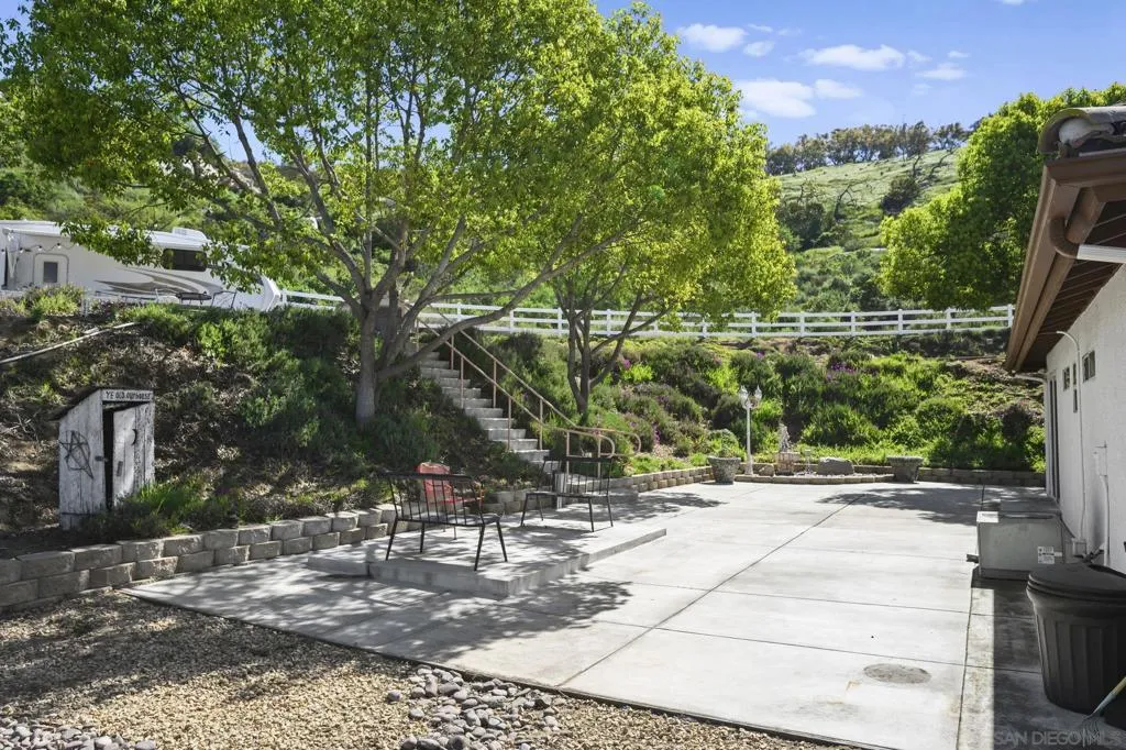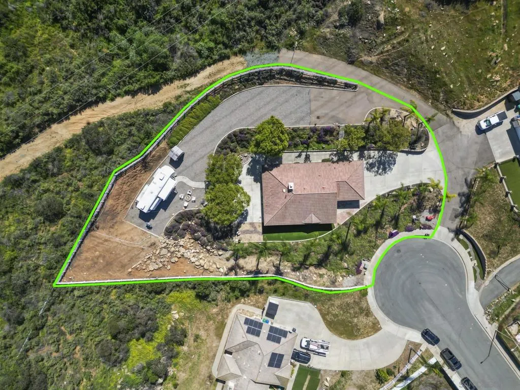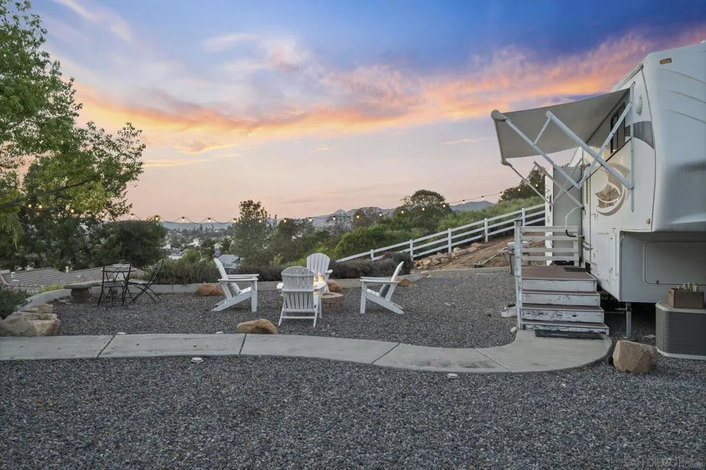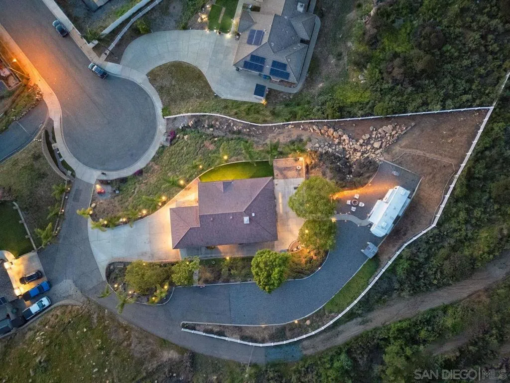 Incredible view home situated on a huge ¾-acre lot at the top of a peaceful cul-de-sac. Surrounded by nature, the home sits high above the street offering privacy, beautiful views and has been extensively remodeled over the past 5 years. The stunning kitchen is the centerpiece of the home, featuring marble countertops, massive island, 48” Thor range, Viking fridge, & a beautiful solid walnut floating shelf. Built-in seating provides a cozy dining space and even includes a dog nook. The open-concept layout w/ vaulted ceilings creates an airy living space where the kitchen, dining area & living room flow seamlessly together. The living room features a dramatic slate tile fireplace wall, custom entertainment center, and wired surround sound w/ additional speakers in the kitchen & dining areas. Luxury vinyl plank flooring runs throughout the main living areas. The spacious primary suite enjoys scenic views & direct access to an outdoor patio & a large walk-in closet. The spa-inspired primary bath features stunning floor-to-ceiling Italian porcelain tile shower and a modern glass shower enclosure that allows abundant natural light. Outdoor spaces are equally impressive, w/ beautiful landscaping, multiple patios, fire pit area, and a pad ready for a hot tub. An upper driveway provides additional parking w/ full RV hookups & space that could accommodate a future ADU. The property currently includes a 5th-wheel trailer that has been used as a short-term rental. With its exceptional finishes, expansive lot, and peaceful setting, this is truly a special property.