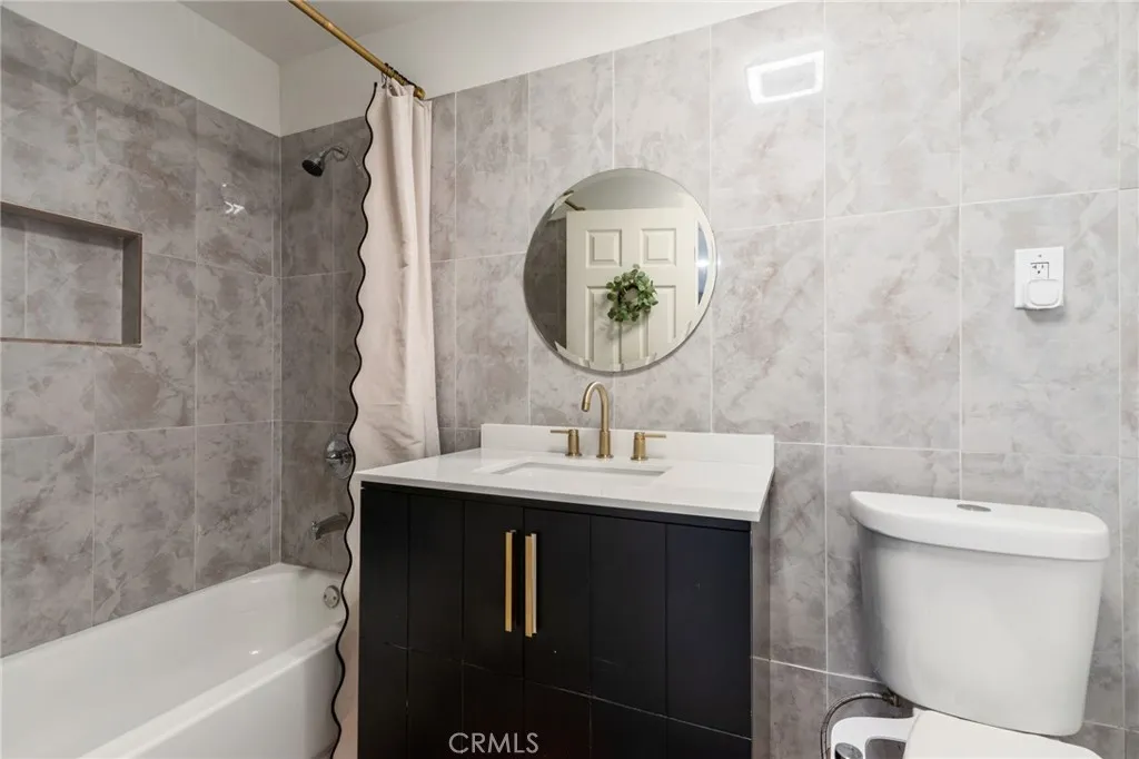 DOUBLE MASTER BEDROOMS! This beautifully remodeled home offers a rare dual primary suite layout, ideal for extended family, guests, or flexible living arrangements. One of the primary bedrooms was thoughtfully converted into a private suite from the garage space and features its own bathroom, closet, and built-in wall safe. The second primary bedroom showcases a stunning upgraded bathroom with three shower heads, creating a spa-like experience. Bathrooms also feature built-in Bluetooth speakers and customizable lighting controlled through a smartphone app. Property records reflect 2 bedrooms, 2 bathrooms, and approximately 1,000 sq ft. After renovations, the home is currently configured as 3 bedrooms, 3 bathrooms with approximately 1,627 sq ft of living space. Conversion and square footage may not be reflected in public records; buyer to verify permits and all information to their satisfaction. The home features a modern open layout with polished porcelain flooring and smooth drywall finishes throughout. The kitchen includes epoxy countertops, soft-close cabinetry, floating shelves, an electric cooktop on the island, electric wall oven, dishwasher, and a built-in wine cooler beverage fridge, making it perfect for entertaining. Major system upgrades include new electrical wiring with recessed lighting throughout, a full-home PEX re-pipe with new ABS drains, and an energy-efficient tankless water heater. Step outside to a backyard designed for gatherings, featuring a built-in barbecue with natural gas hookup, a kids’ sandbox area, and a propane gas fire pit table—perfect for relaxing or entertaining. A must-see home offering modern upgrades and flexible living space!